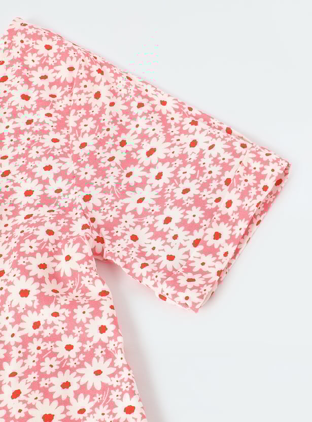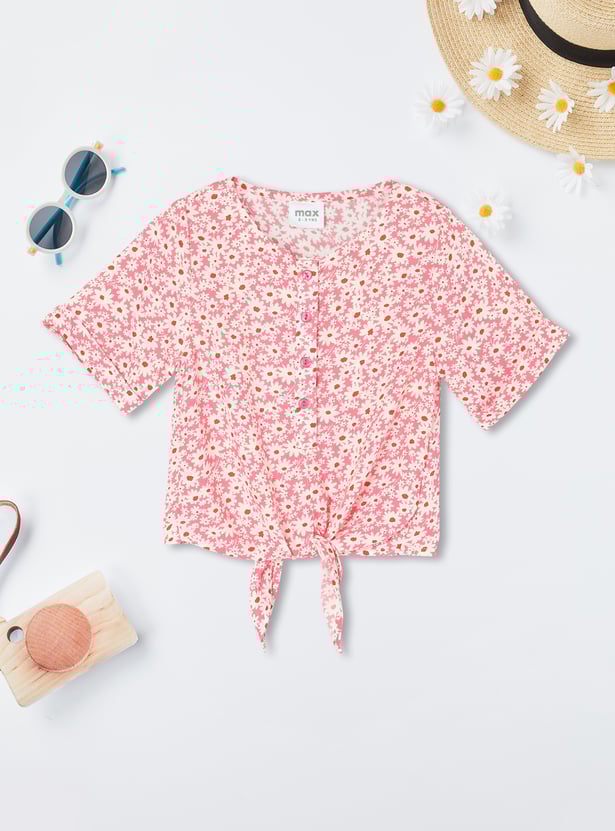 Girls Printed Tie-Up Detail Top