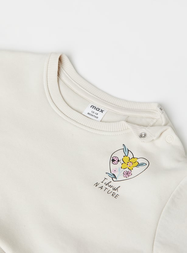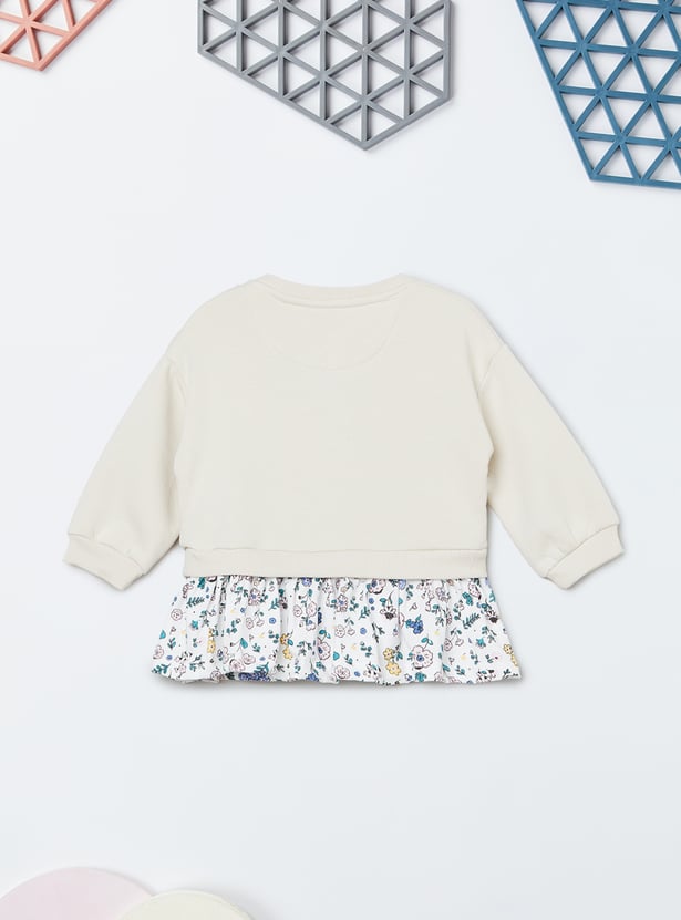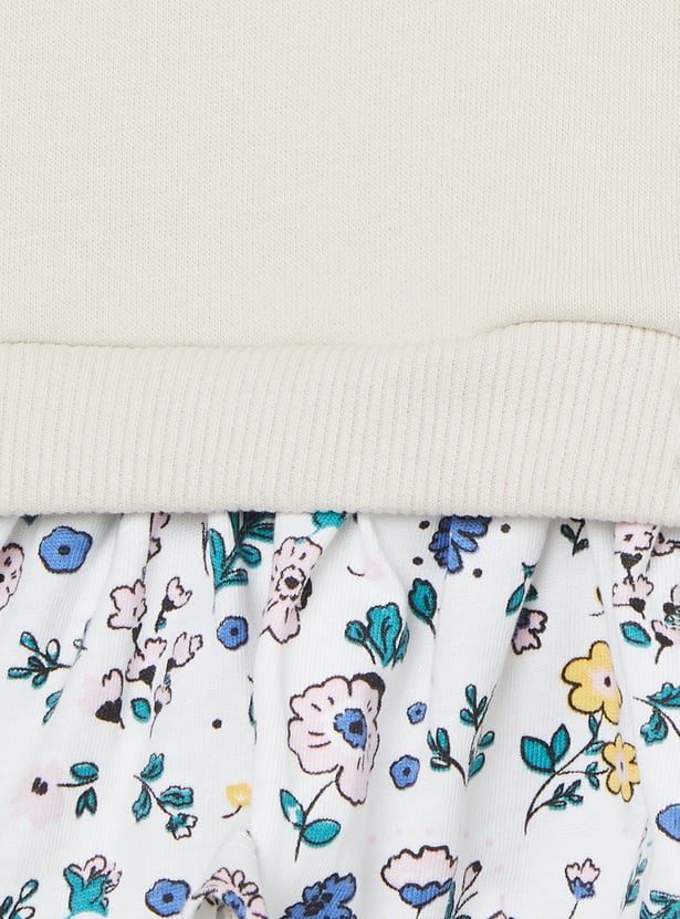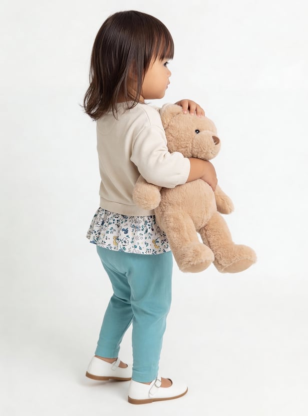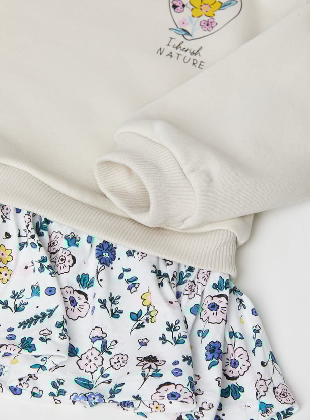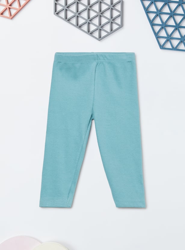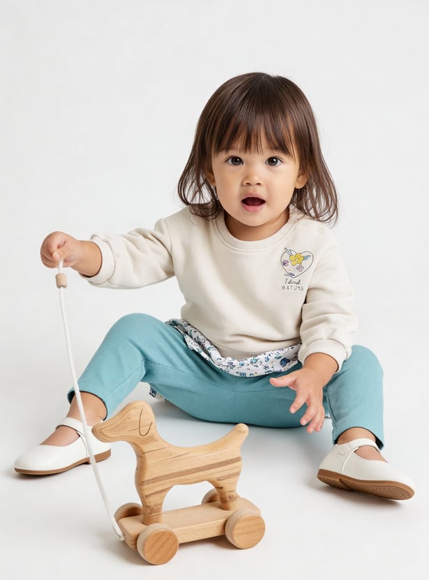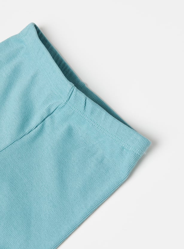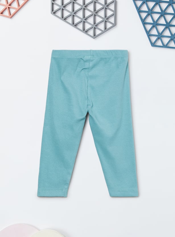 Step out in style with this printed leggings set. The layered top features a round neck, full sleeves, and a printed flounce hem for a chic touch, while the solid leggings come with an elasticated waist for all-day comfort.