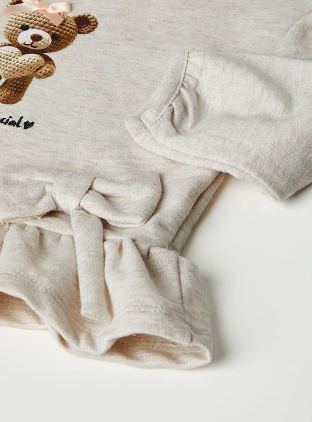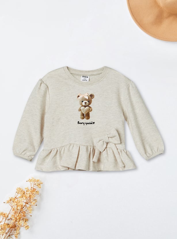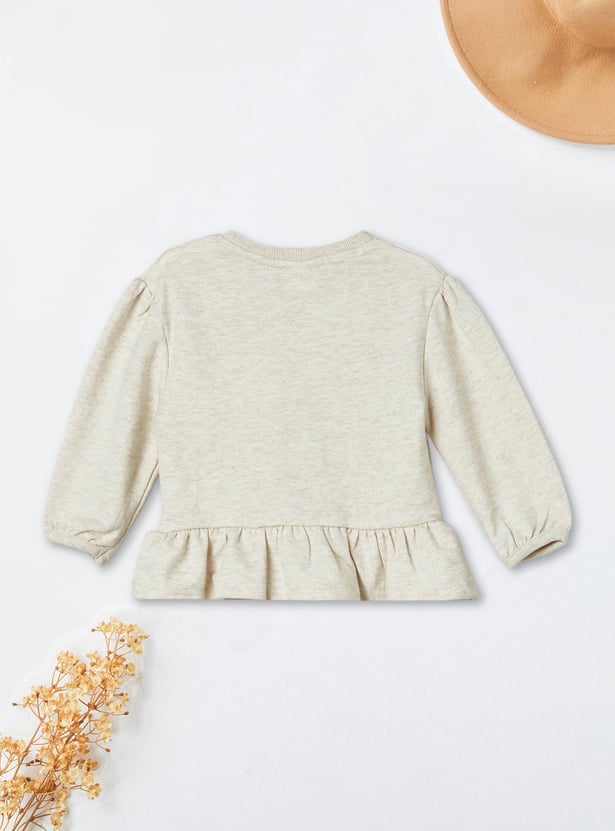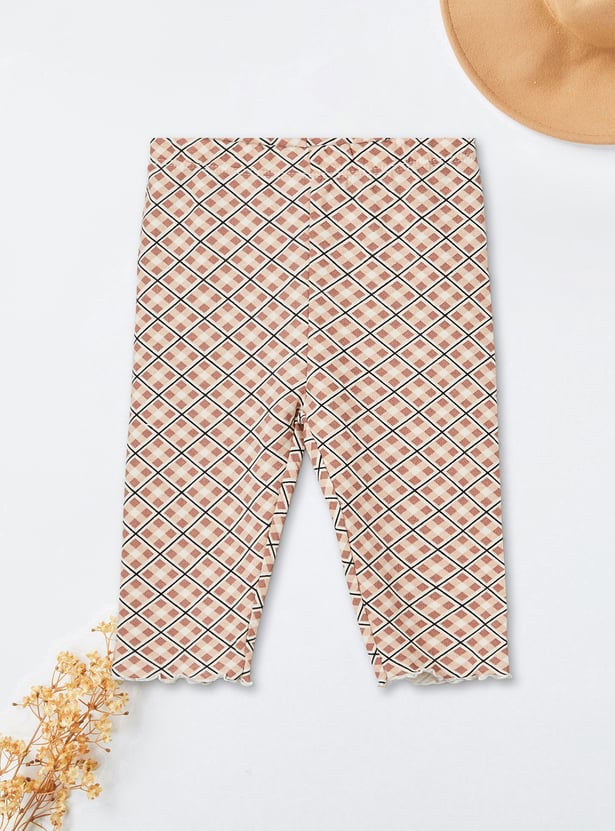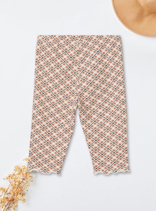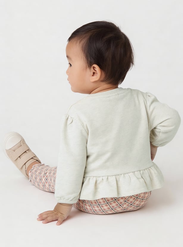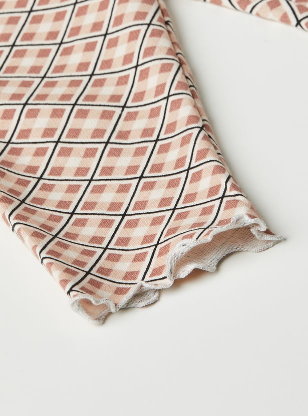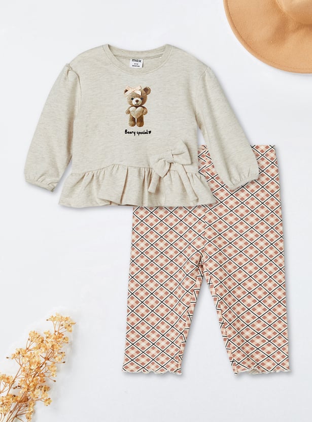 Trendy and comfortable, this printed leggings set is designed for a coordinated look. The top features a round neck, full sleeves, and a flounce hem for a feminine touch, while the printed leggings come with an elasticated waist for ease of wear.