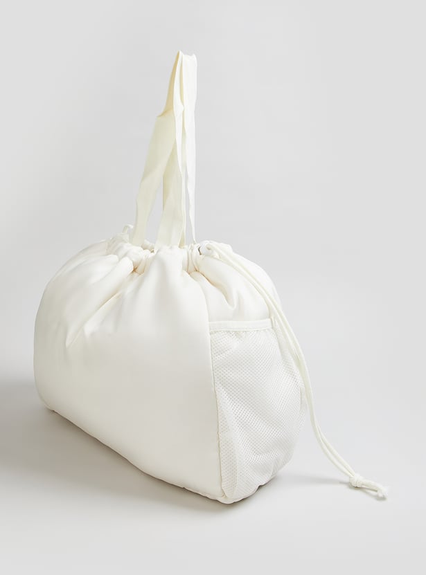 Carry your essentials in style with this printed shopper bag, featuring a trendy design and a convenient drawstring closure for secure storage. The twin handles offer comfortable carrying, making it perfect for daily use, shopping, or casual outings.