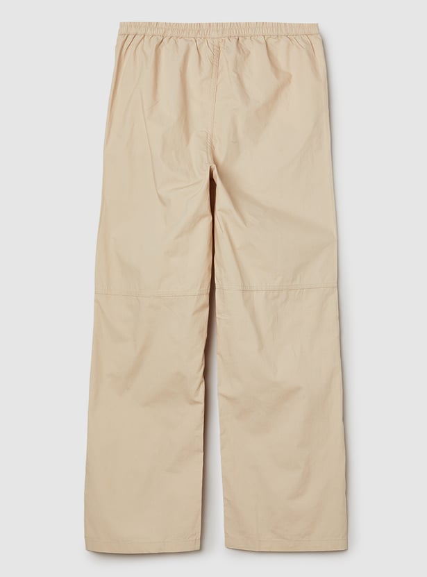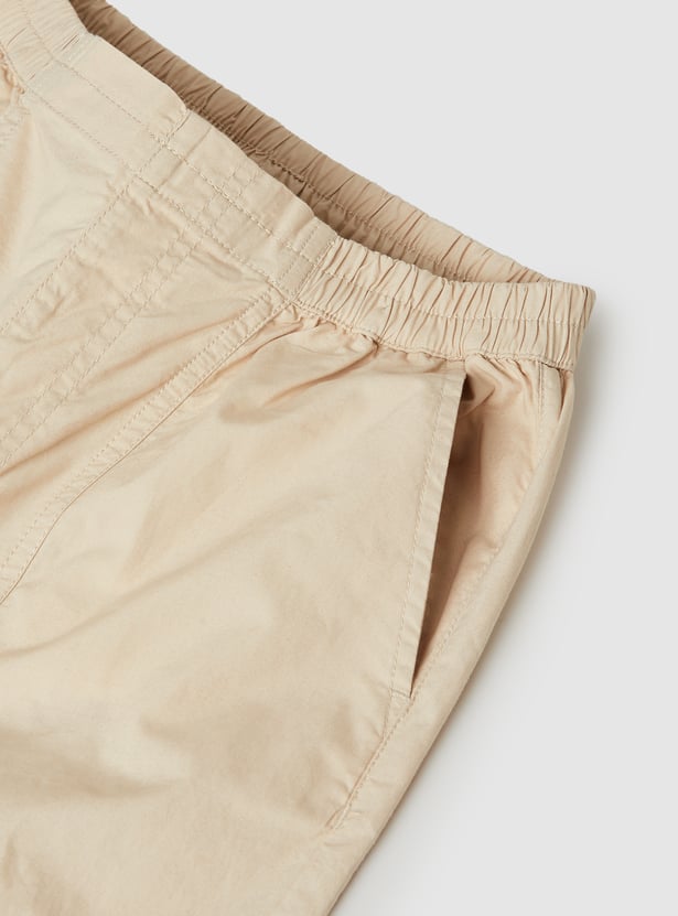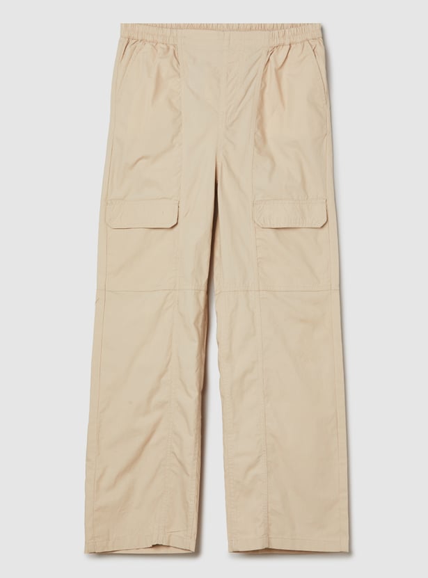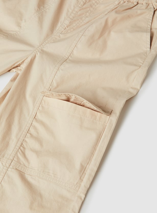 Stay comfortable and stylish with these solid cargo trousers, featuring an elasticated waist for a flexible, secure fit. Designed with spacious cargo pockets, they offer both practicality and a trendy utility-inspired look.
