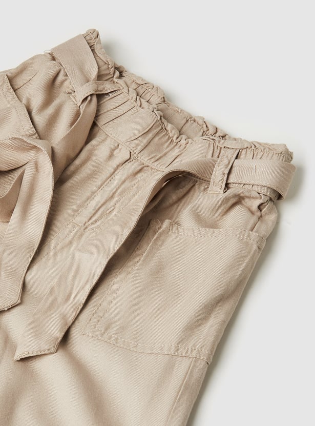 These solid jogger trousers feature a belted elasticated waist for a comfortable and secure fit. With convenient pockets, they offer both style and practicality for everyday wear.