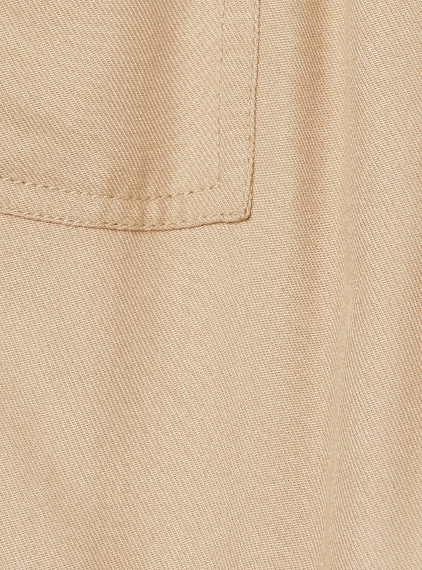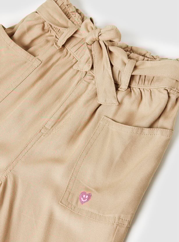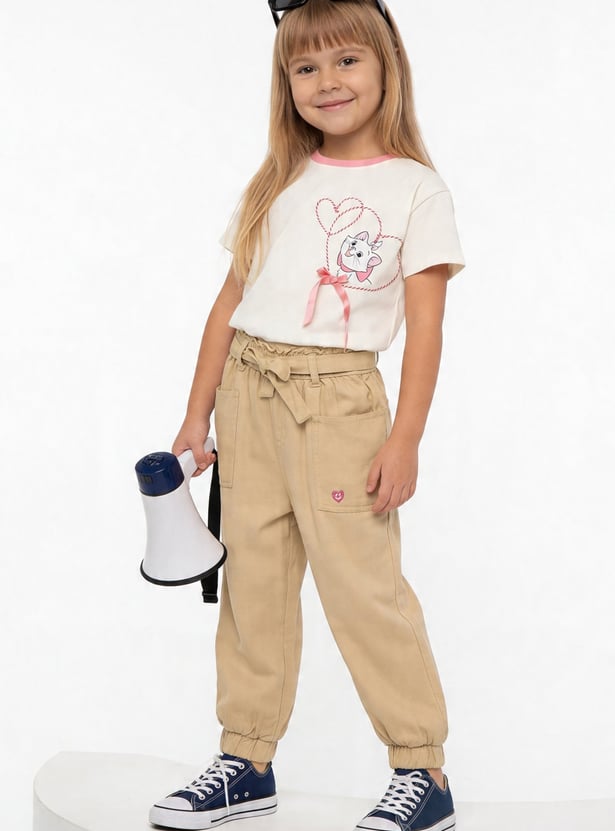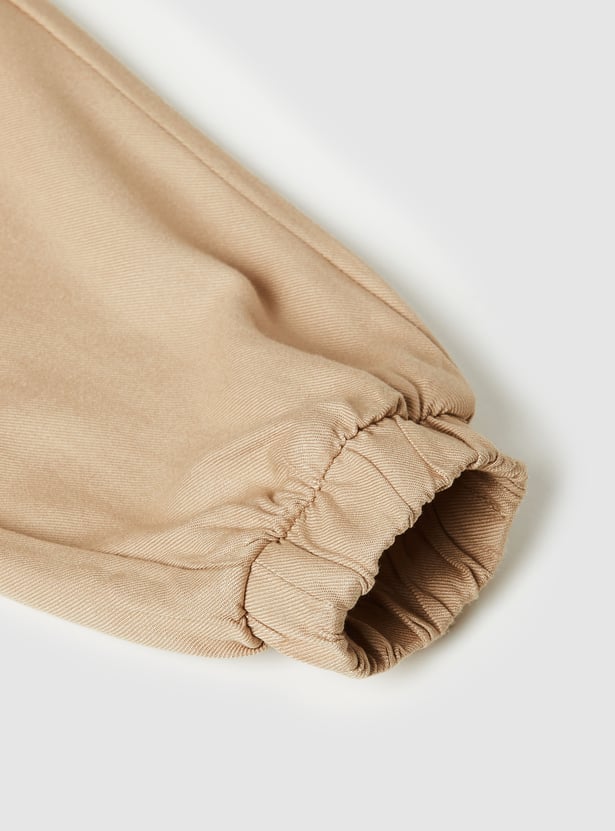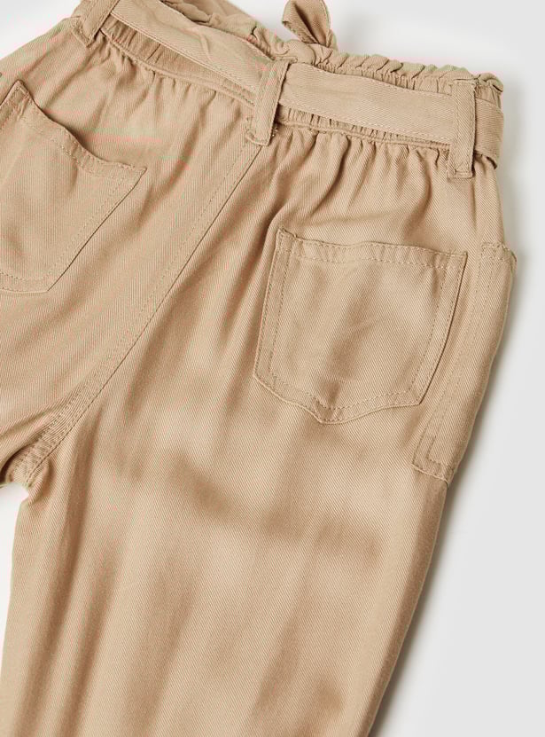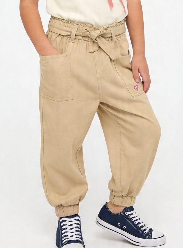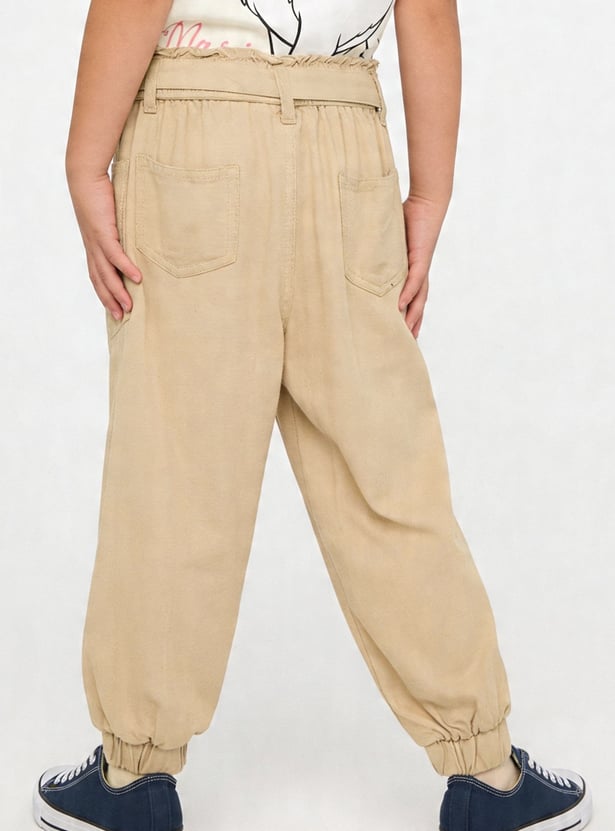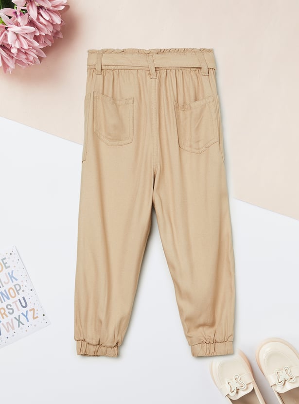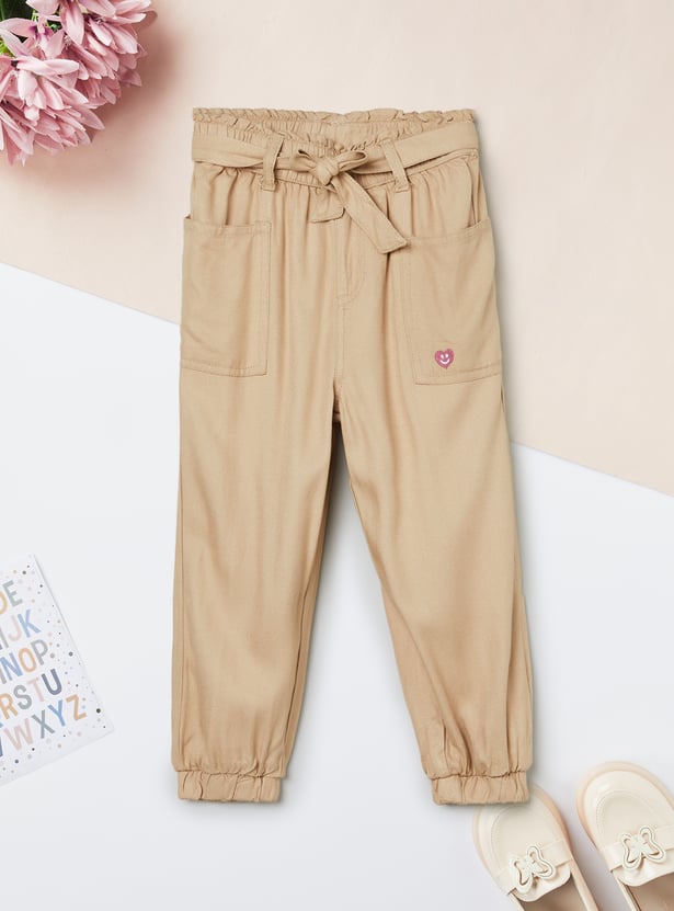 This pair of solid joggers is designed with an elasticated waistband, a waist belt, and patch pockets with ribbed hems.