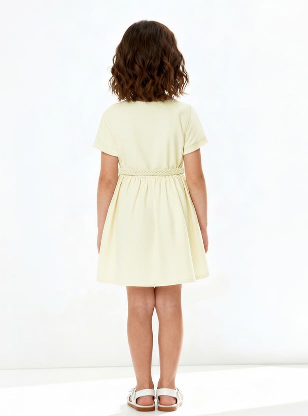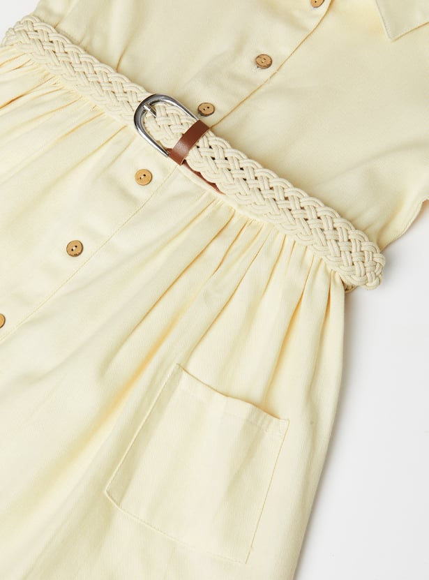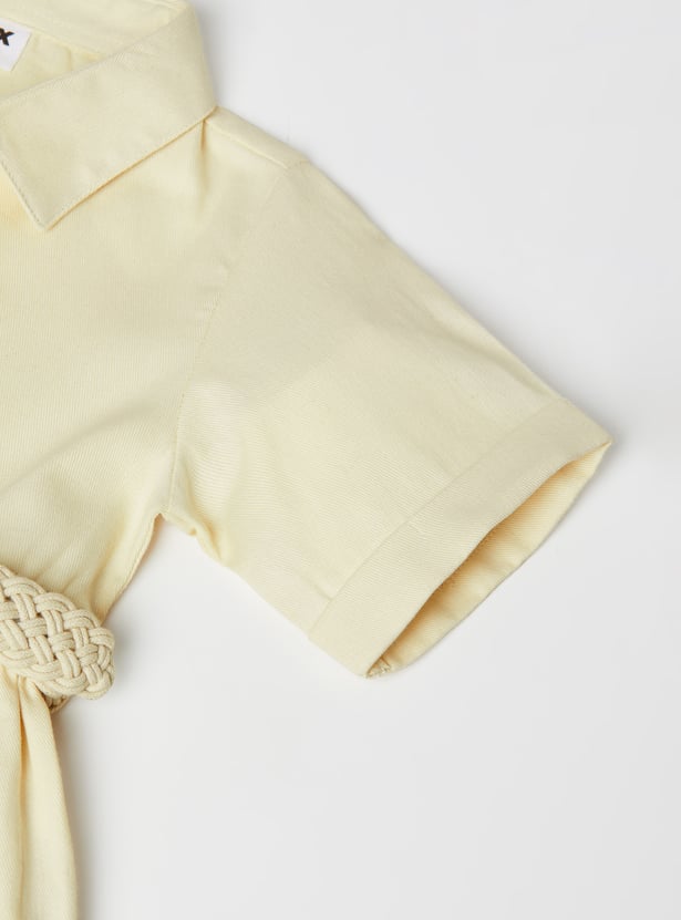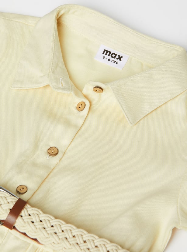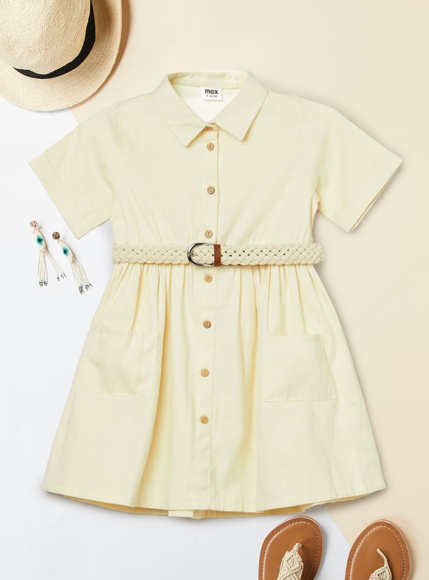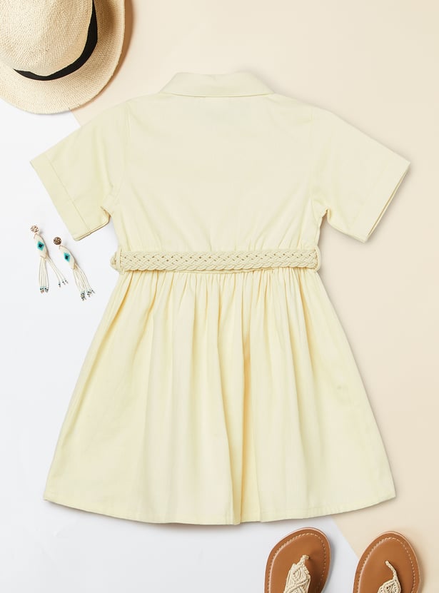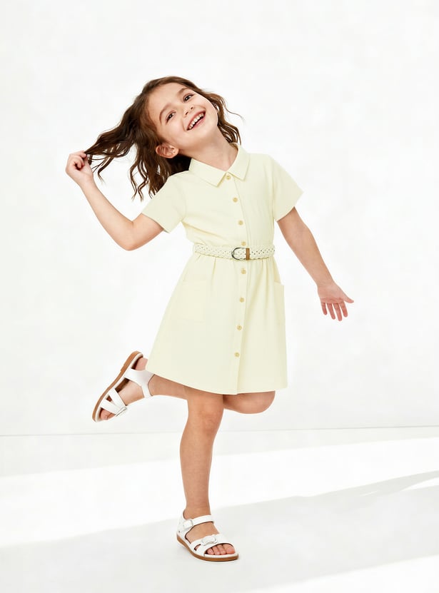 Girls Solid Shirt Dress with Belt