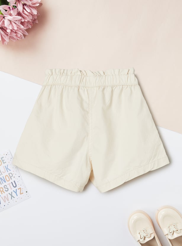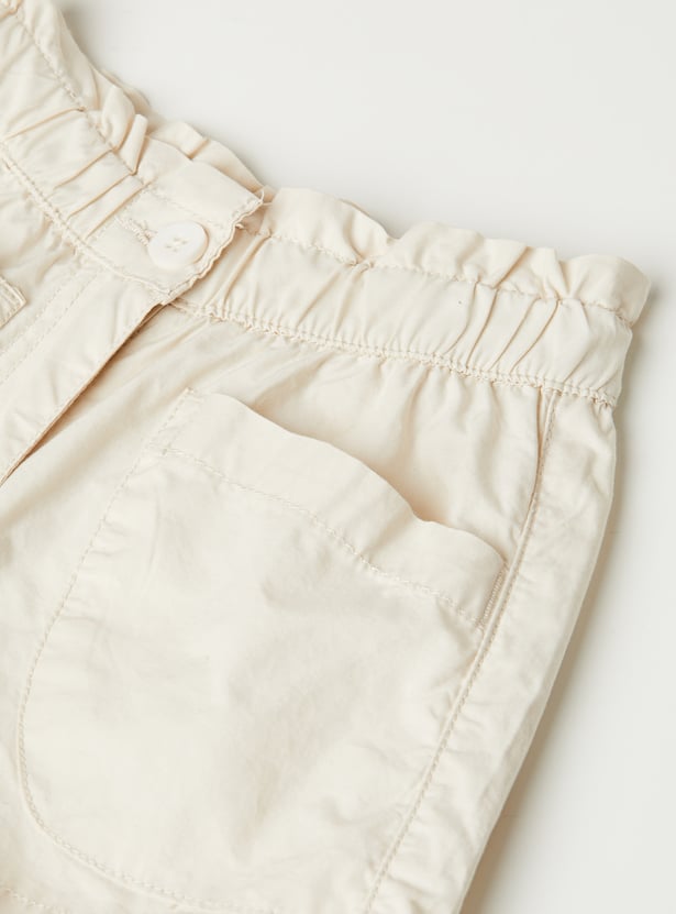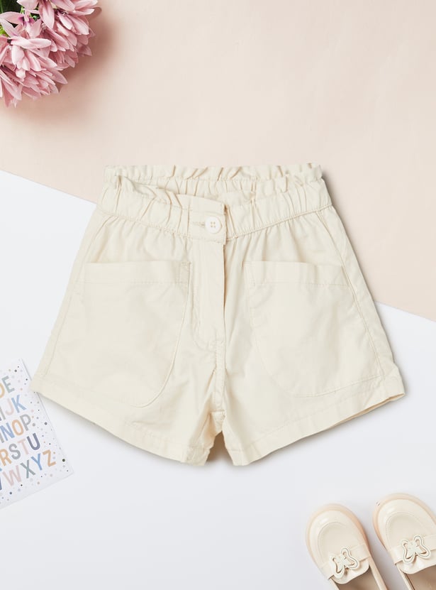 Add a touch of effortless chic to your wardrobe with these solid shorts, featuring a stylish paperbag waist and practical pockets. Perfect for warm days, they offer a flattering fit and a blend of comfort and trend-forward style.