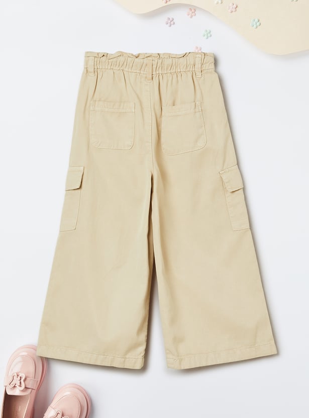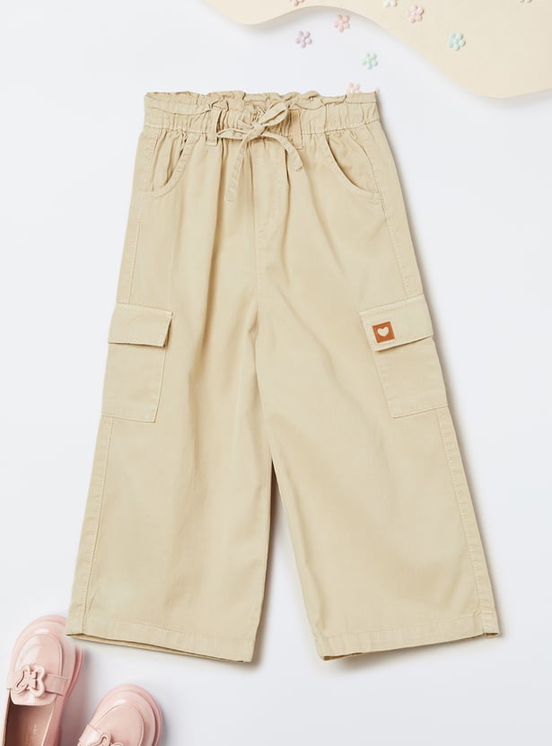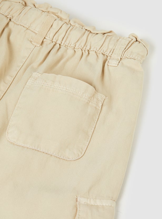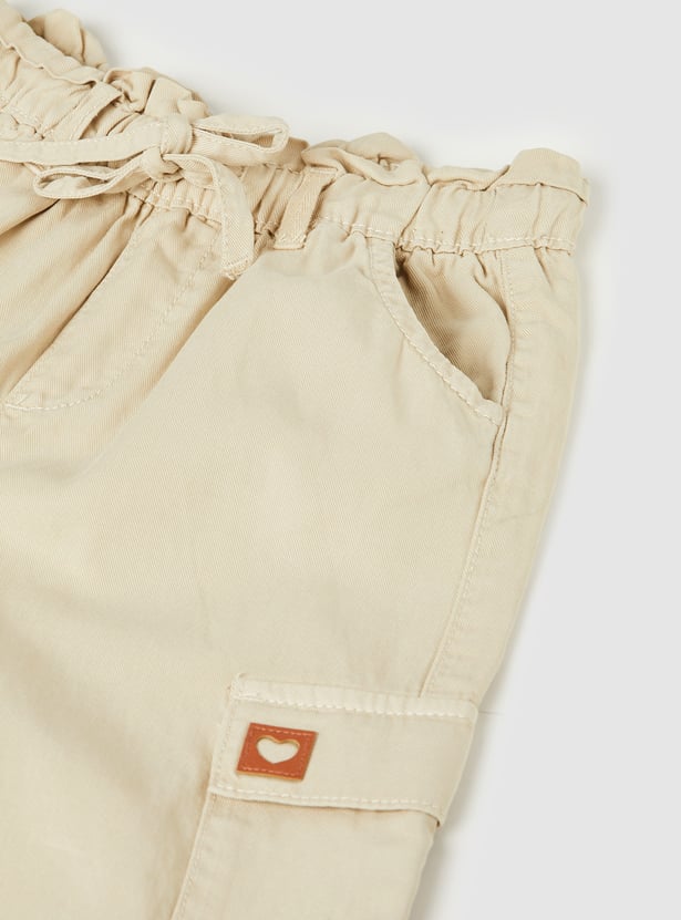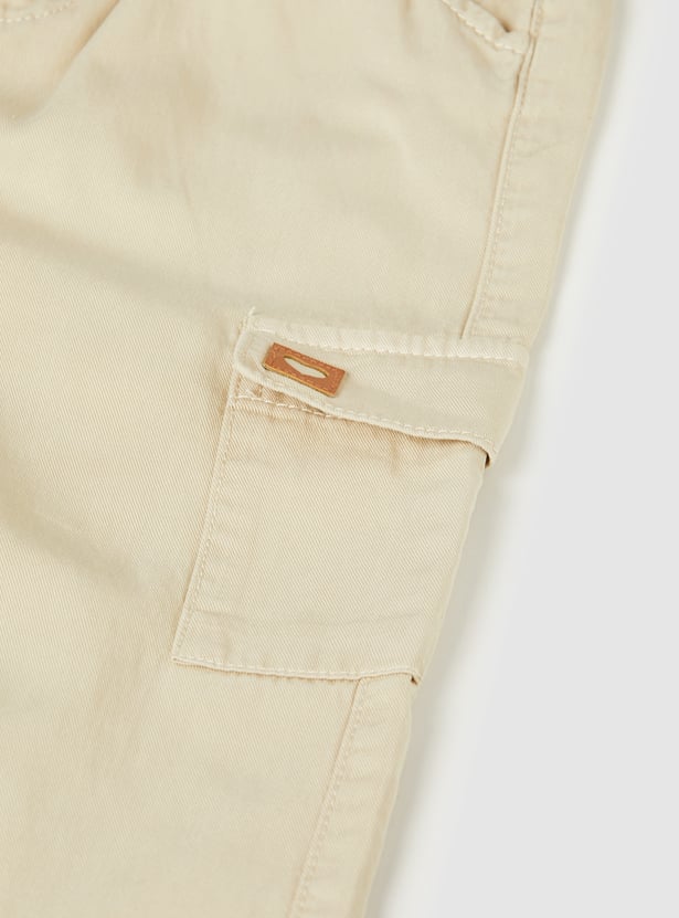 This pair of cargos is designed in a regular fit and features insert and patch pocket construction, an elasticated waistline with a drawstring closure, and belt loops.