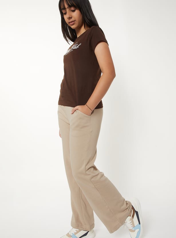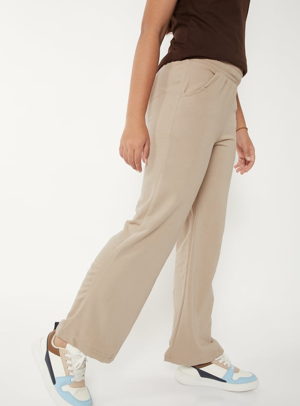 Girls Solid Wide Leg Trousers