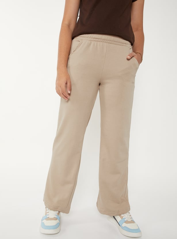 Step into effortless style with these solid wide-leg trousers. Designed with an elasticated waist and pockets for all-day comfort and ease.