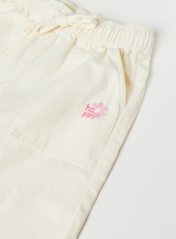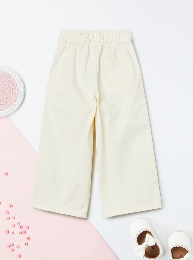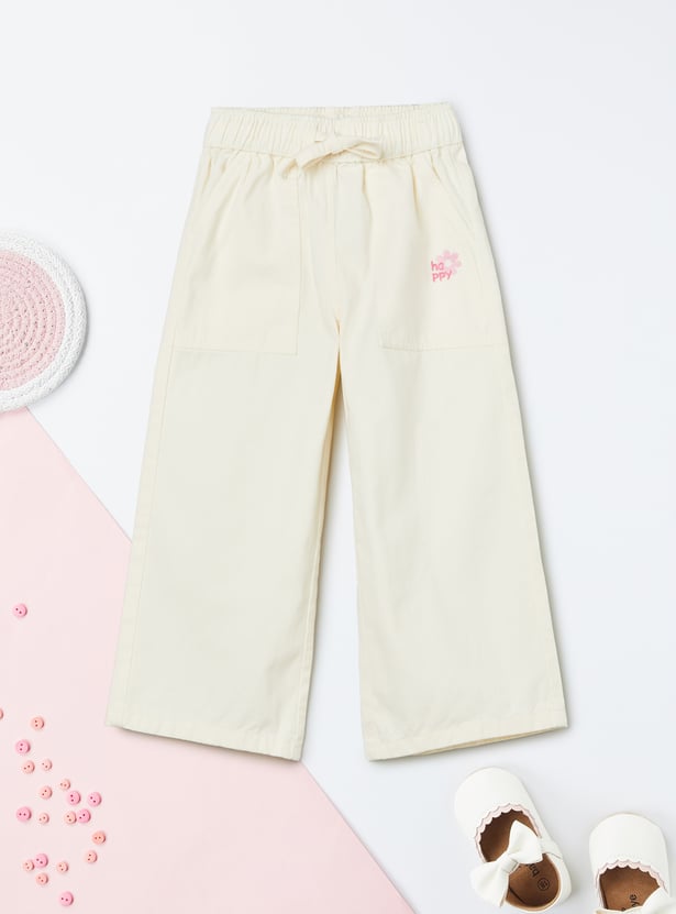 This pair of solid trousers, designed in a wide-leg fit, features insert pockets and an elasticated waistline with drawstrings.