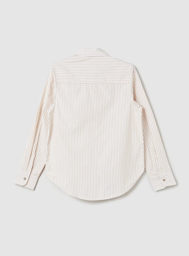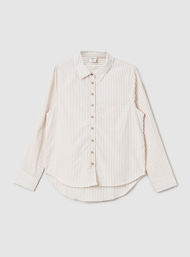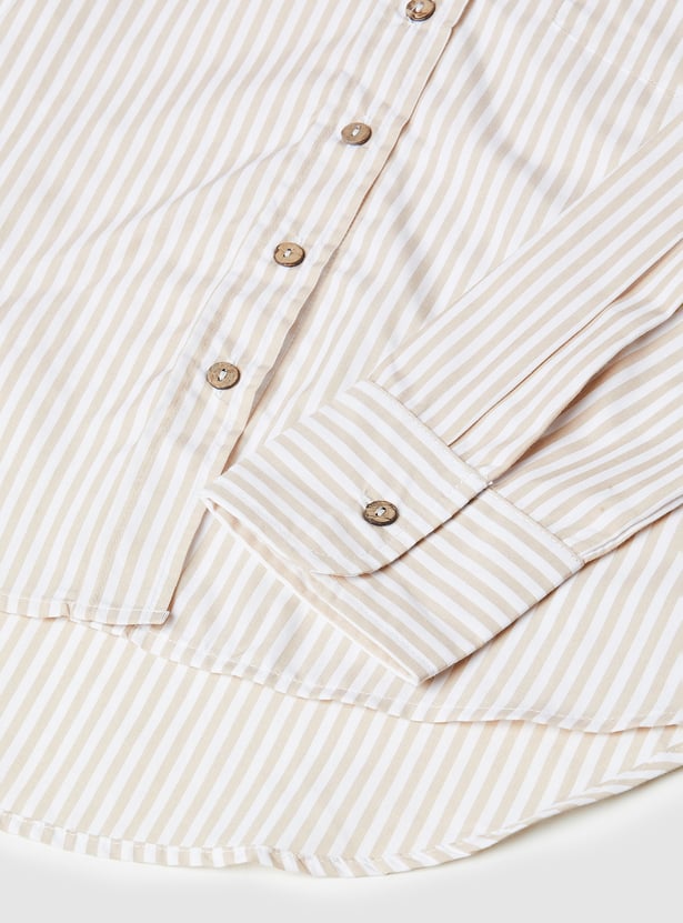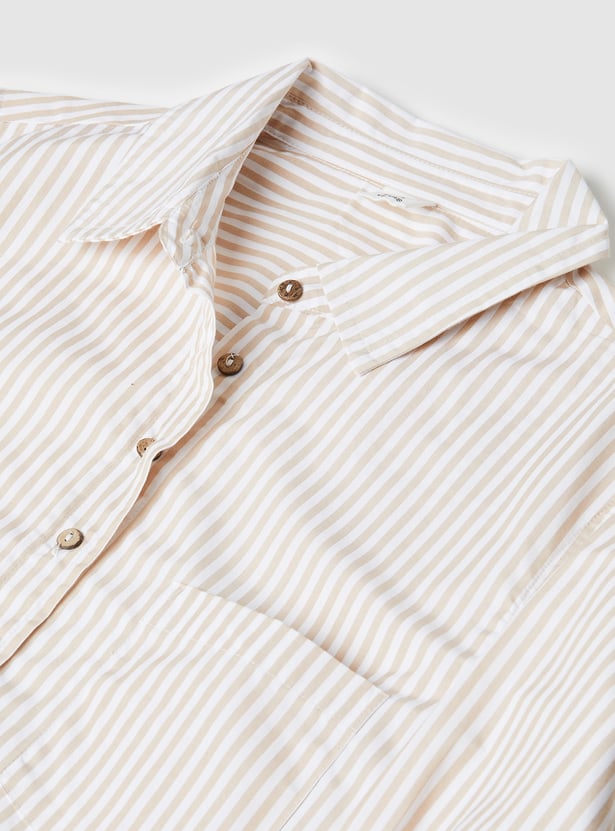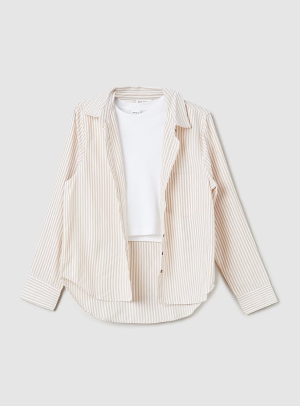 Get the best of both worlds with this stylish striped shirt and t-shirt combo! The collared shirt features a button placket and full sleeves with button cuffs, while the half-sleeve tee underneath offers a round neck and a laid-back vibe.
