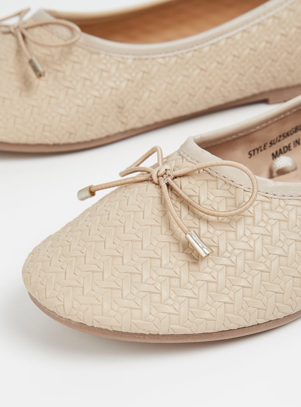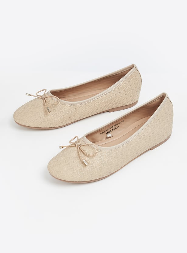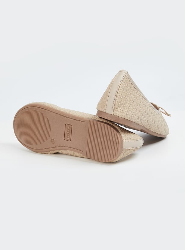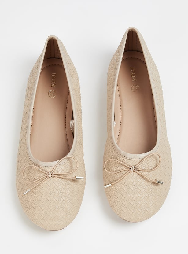 Add a touch of elegance with these textured ballerinas, featuring a charming bow on top. Designed with a convenient slip-on style for effortless wear and all-day comfort.