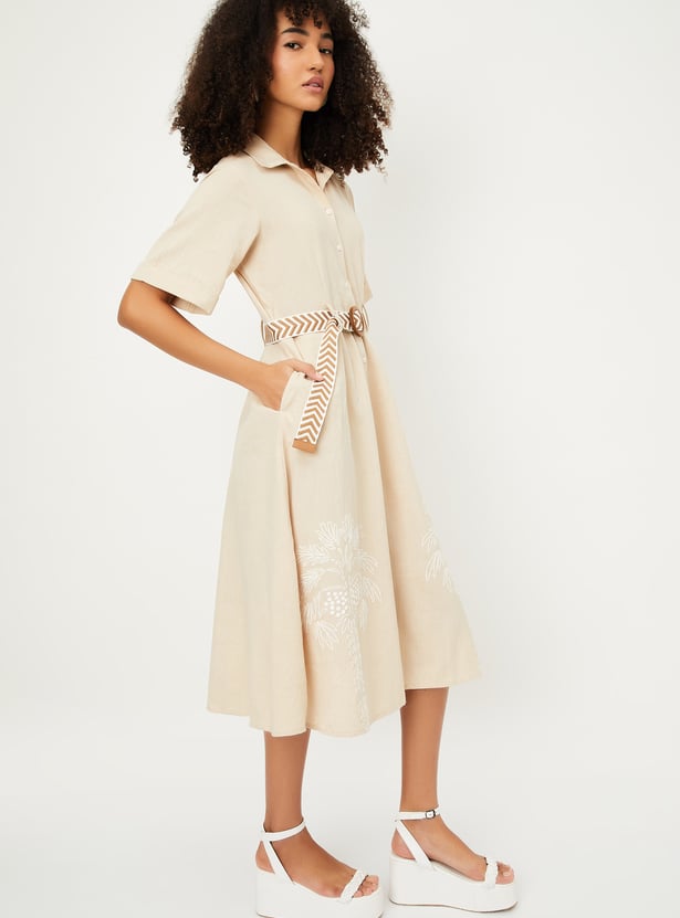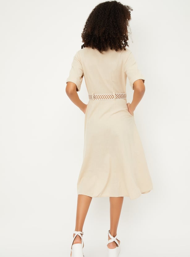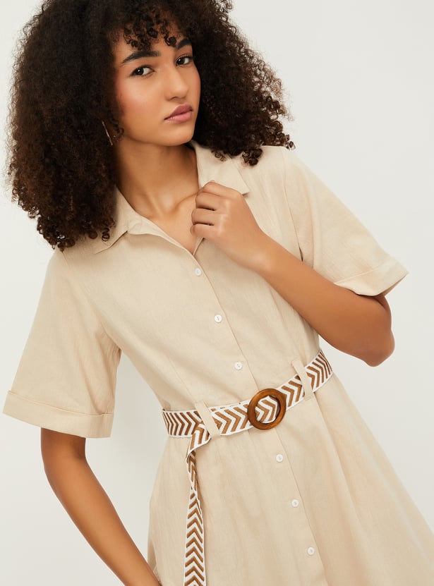 Kalki X Max Women Solid Belted Shirt Dress