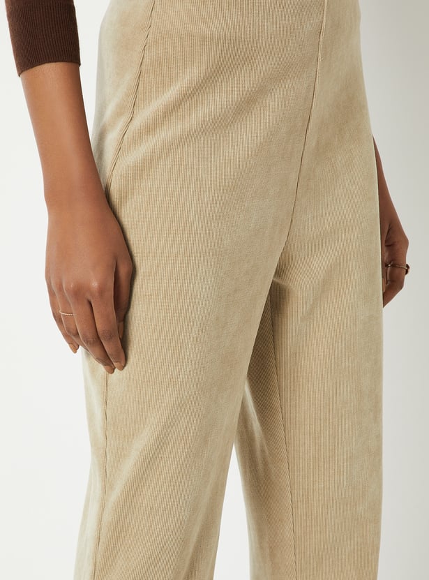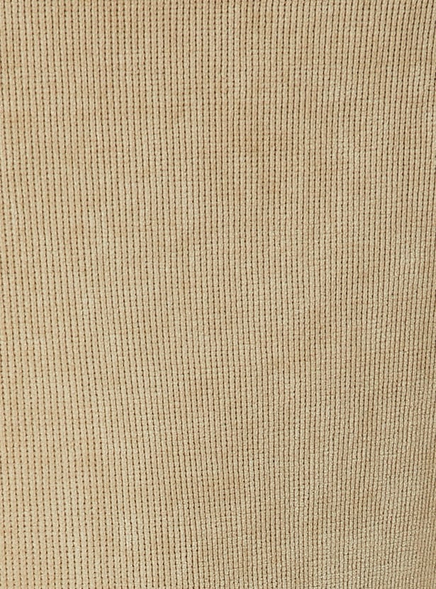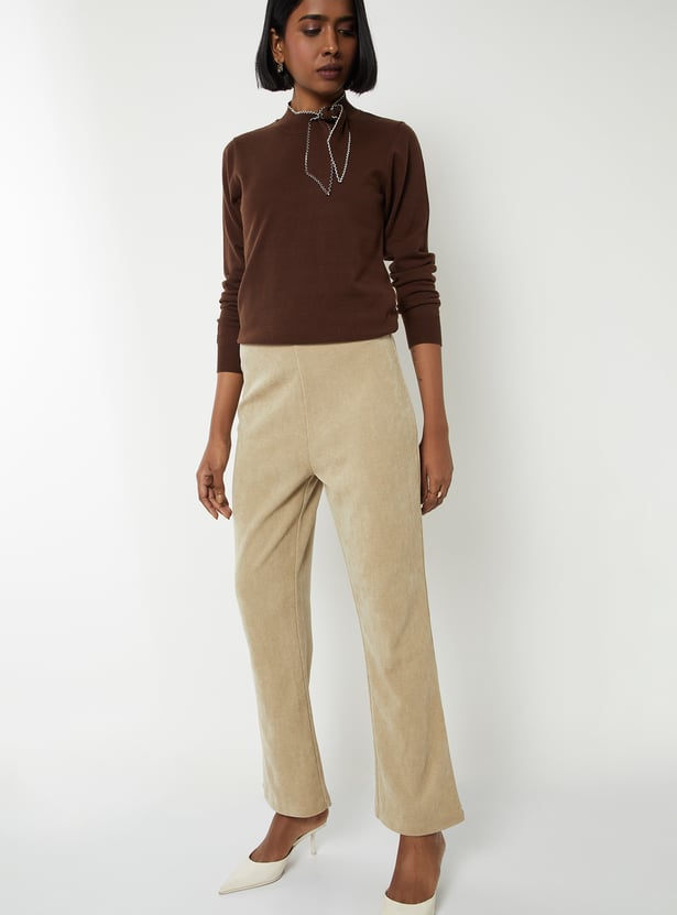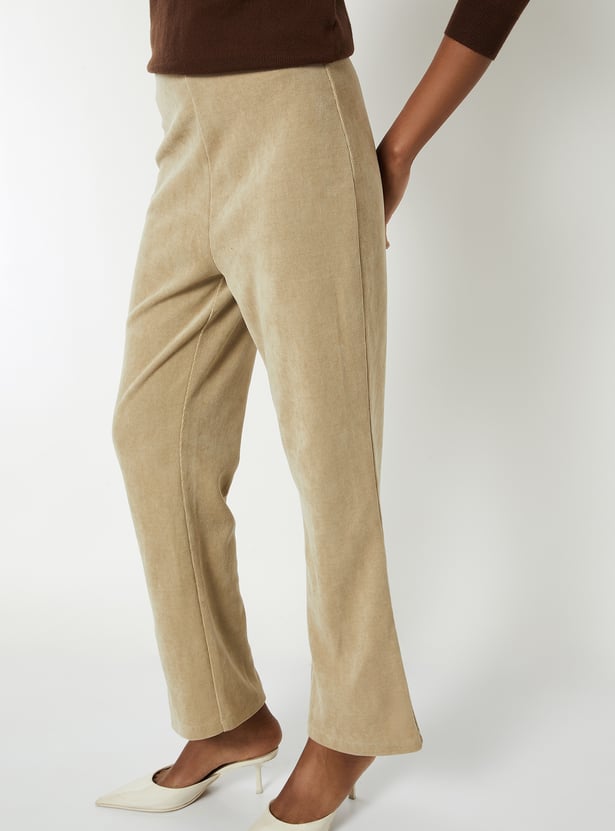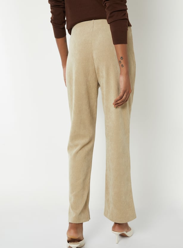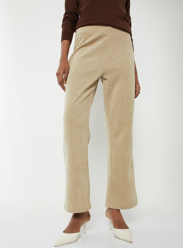 Stay effortlessly stylish with these knit textured flared trousers, designed with an elasticated waist for all-day comfort. The soft texture and flared silhouette add a modern touch to casual dressing. Model Size :