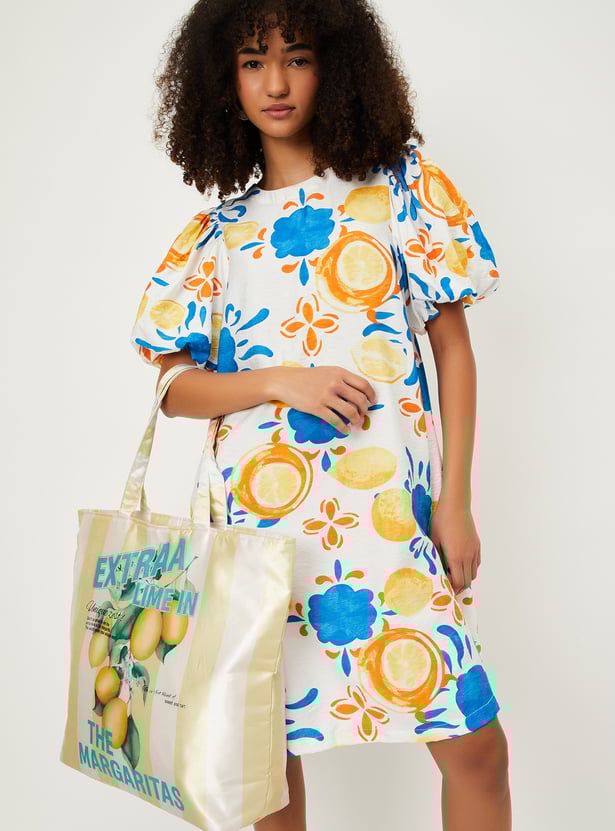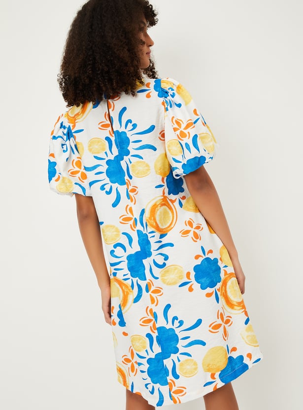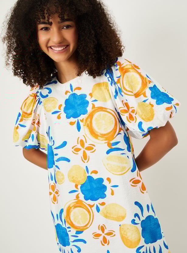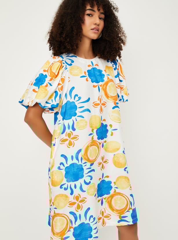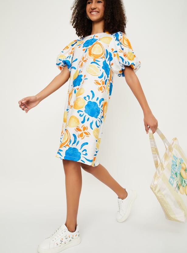 Effortlessly stylish and comfortable, this dress is ideal for casual outings or weekend get-togethers. Featuring knee-length styling and balloon sleeves, it offers a flattering, relaxed fit perfect for everyday wear. The vibrant prints bring a burst of colour, while the waist pockets add both style and functionality.