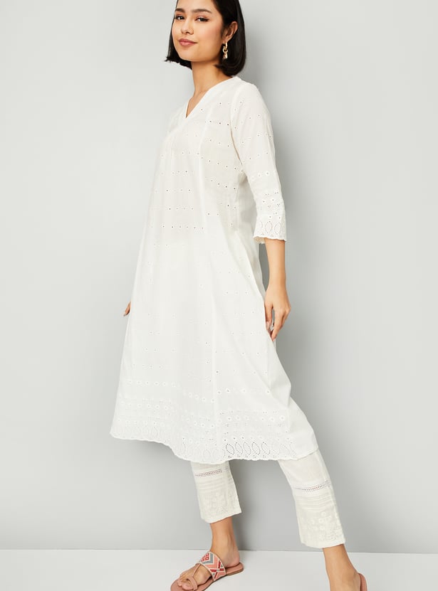 Kalki x Max Women Schiffili Embroidered A-line Kurta