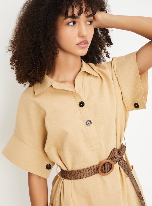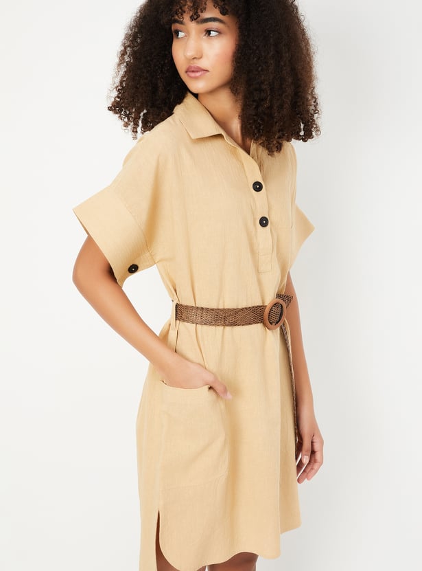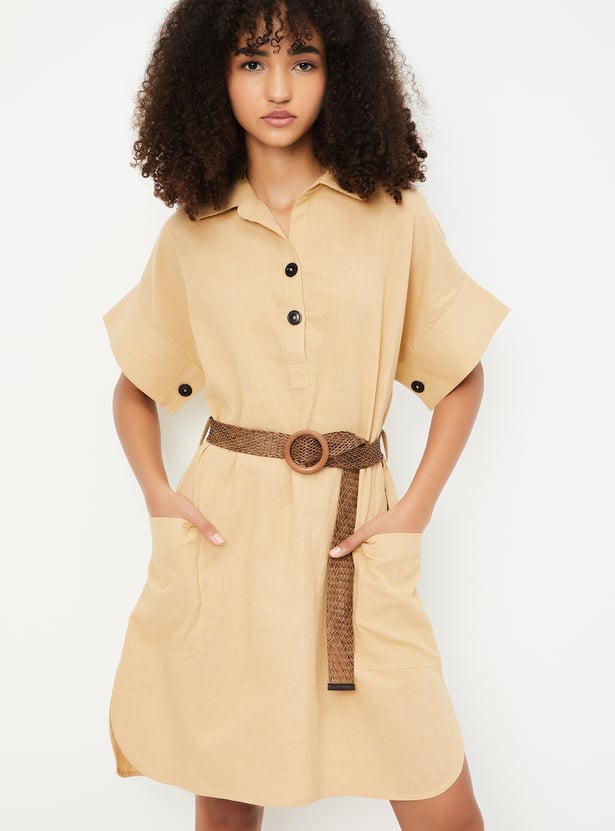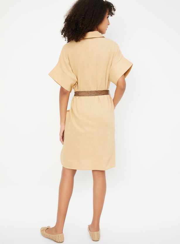 Kalki x Max Women Solid Belted Shirt Dress