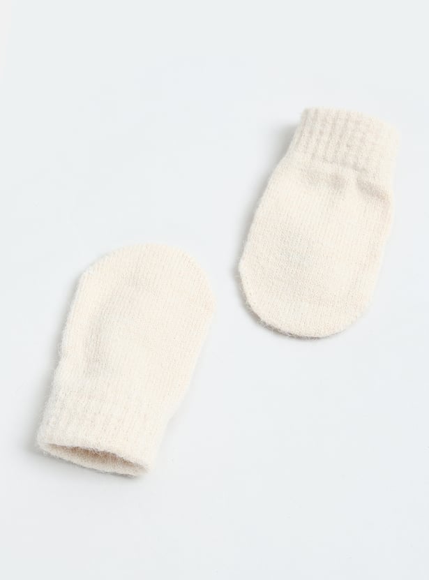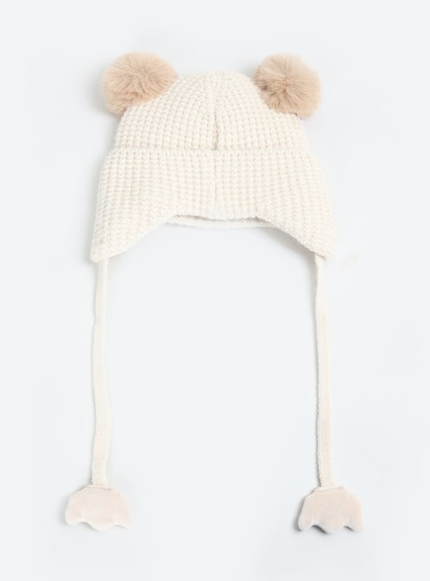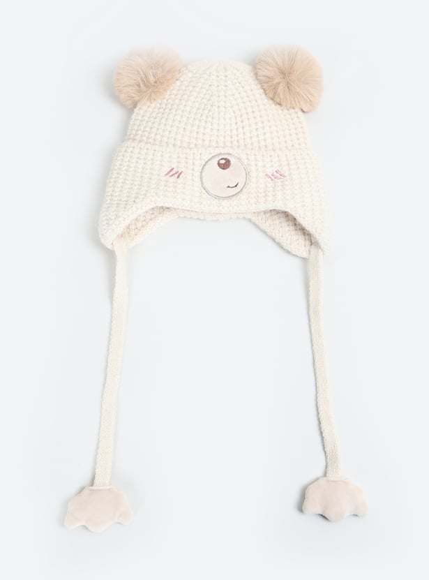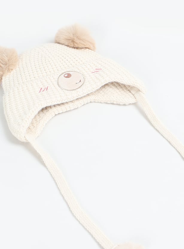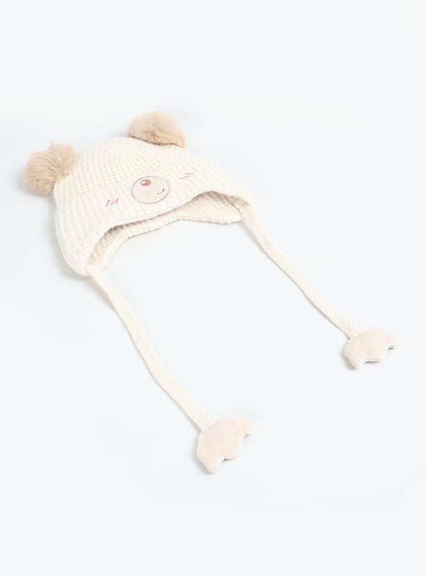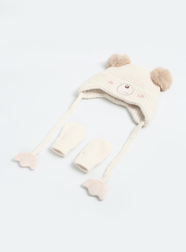 Keep your little one cozy with this beanie and mittens set, featuring an applique design and tie-up detail on the beanie for a snug fit.