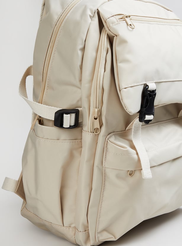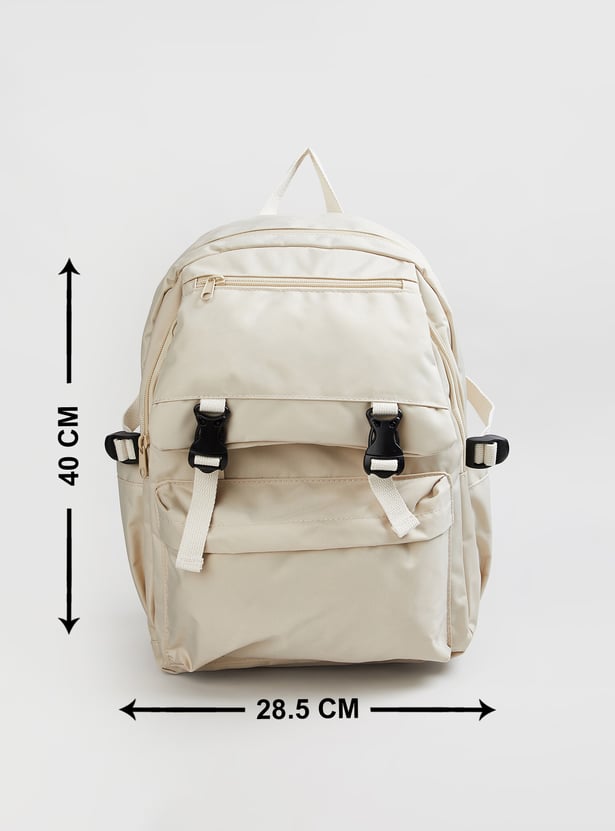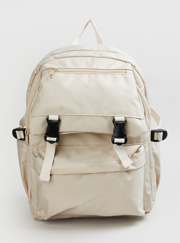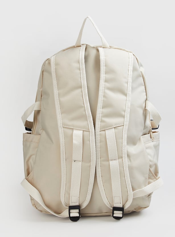 Stay organized on the go with this textured backpack, designed to balance style and functionality. It features a secure zip closure, a spacious front zip compartment, and convenient bottle stashes on the sides. Adjustable back shoulder straps ensure effortless carrying, making it a must-have.