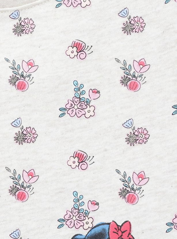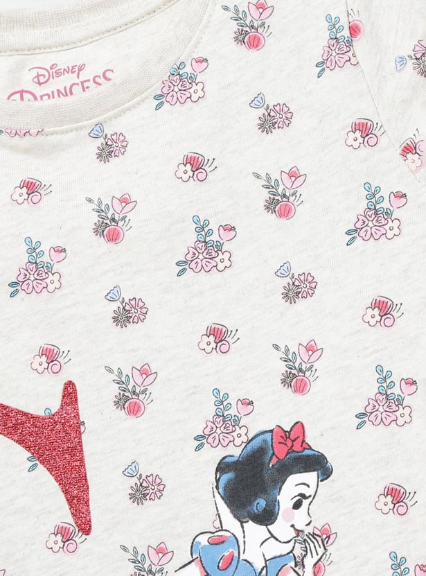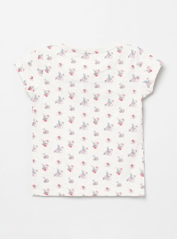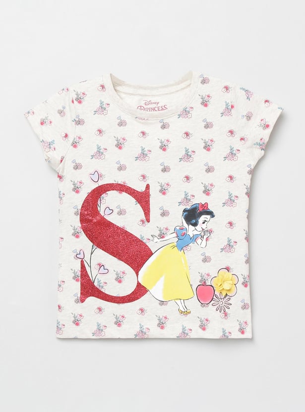 An ideal pick for a casual wardrobe, this trendy T-shirt is designed with a graphic print, cap sleeves, and a round neckline.