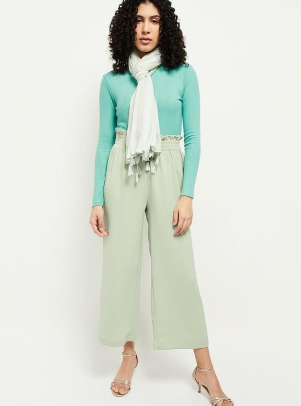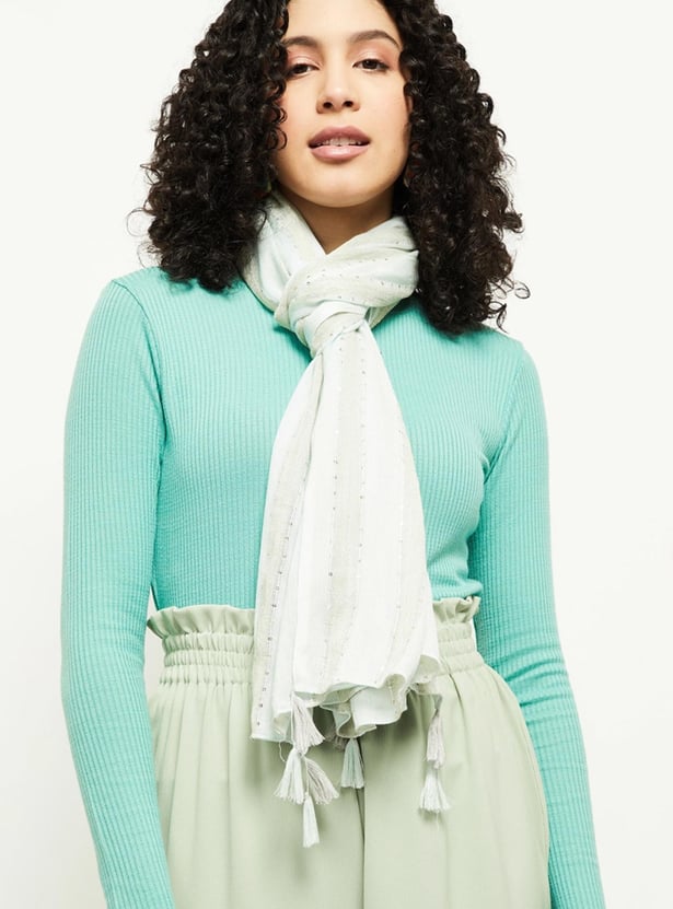 A perfect accessory to lighten up your mood, this scarf is an instant stunner to make your ensemble stand out. Designed with embellishments and tassel details on the border, this one is both stylish and comfortable.