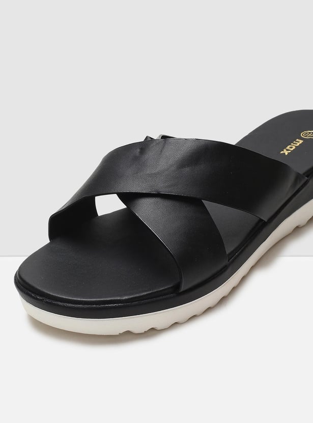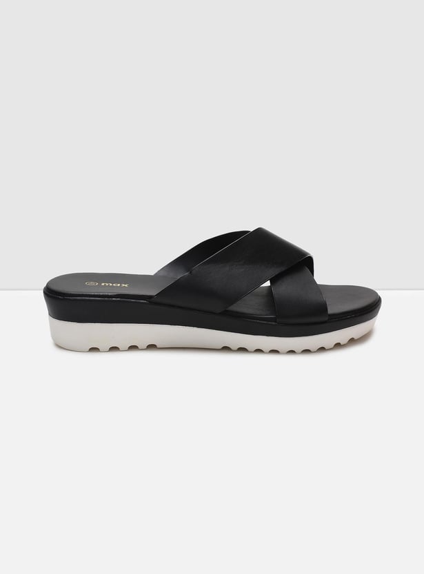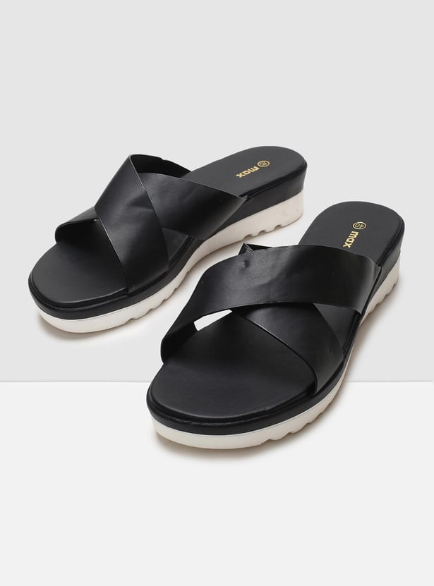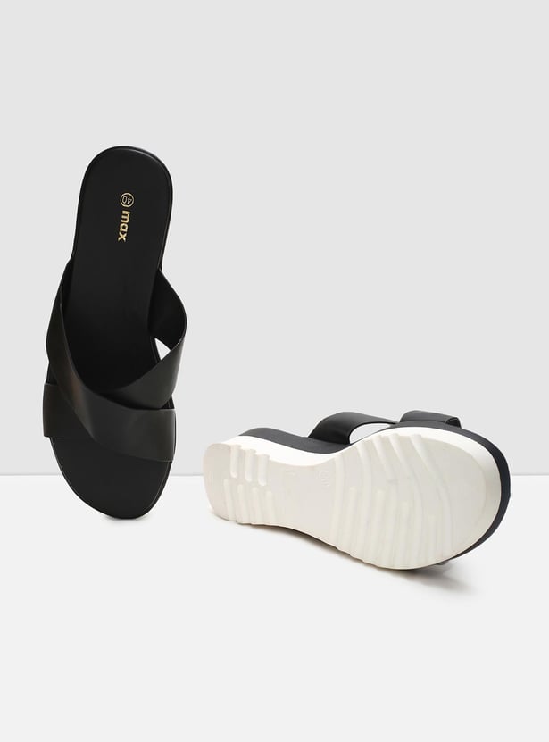 MAX Women Solid Platform Heels Slip-On Sandals