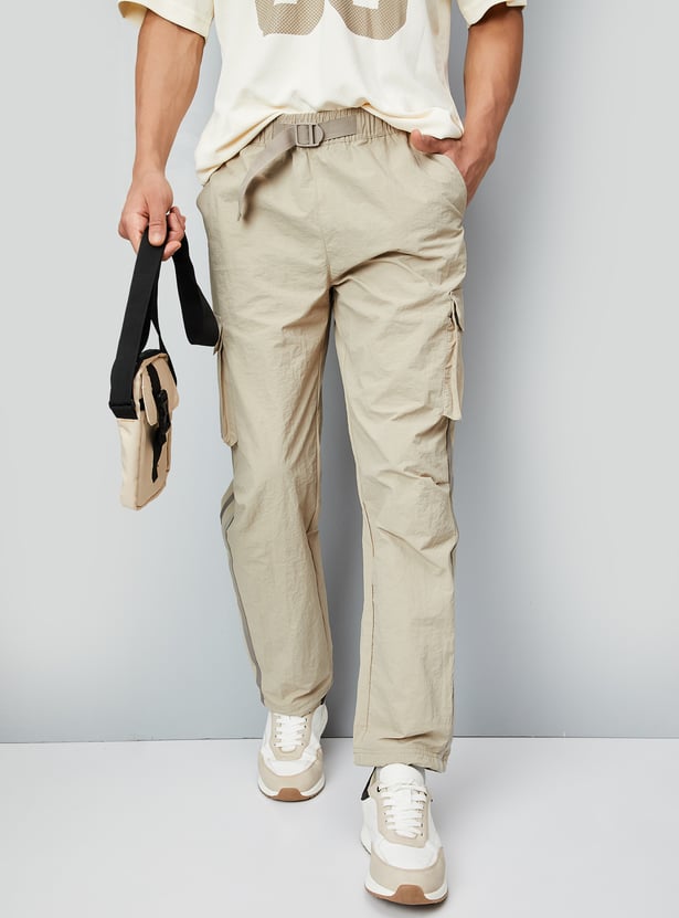Upgrade your casual look with these cargo track pants, featuring sleek side stripes for a sporty edge. The slider belt closure ensures a customizable fit, while the cargo pockets offer practical storage.