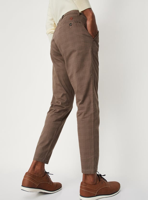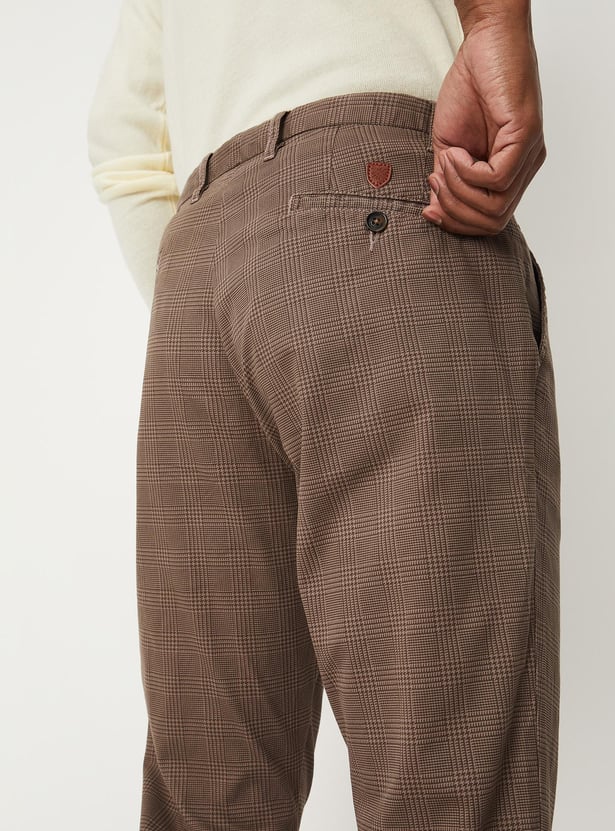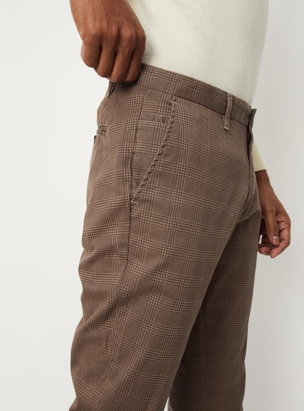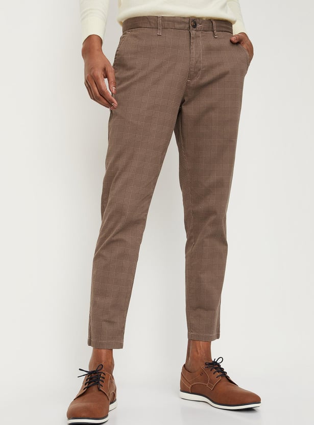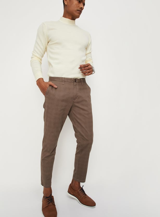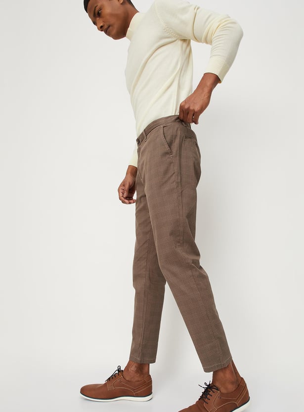 Smarten your outfit with this pair of chinos updated with a classic houndstooth pattern. It features a flat front, belt loop waist, insert pockets, back buttoned welt pockets, and an ankle-length profile. Style this pair of trousers with a sweater and lace-ups for a polished look.