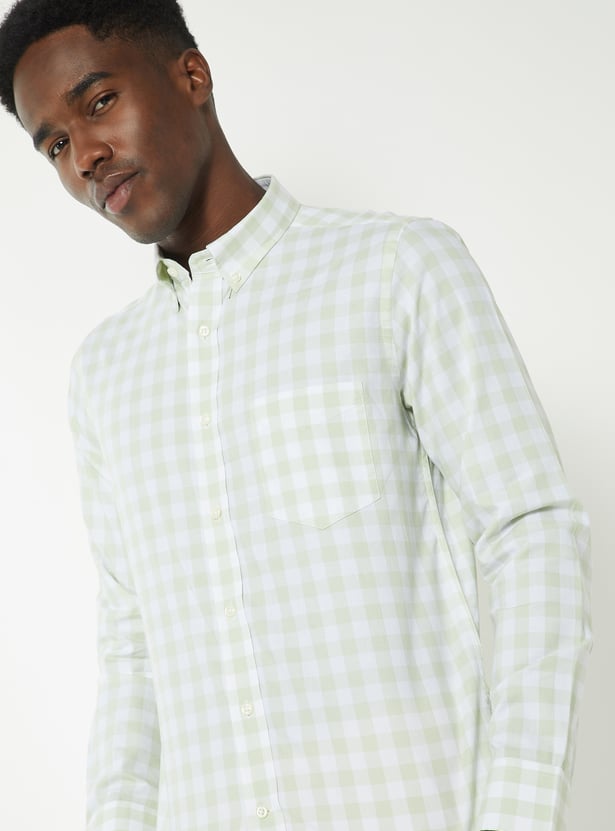 A classic checked slim fit shirt featuring a sharp button-down collar, full sleeves with cuffs, and a neat button placket. Finished with a patch pocket, it blends smart style with everyday versatility.