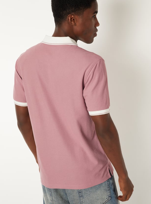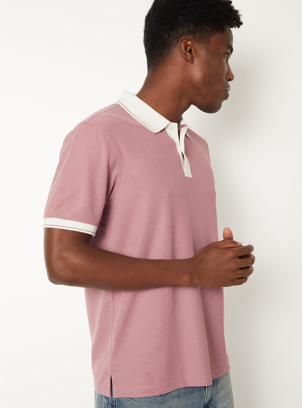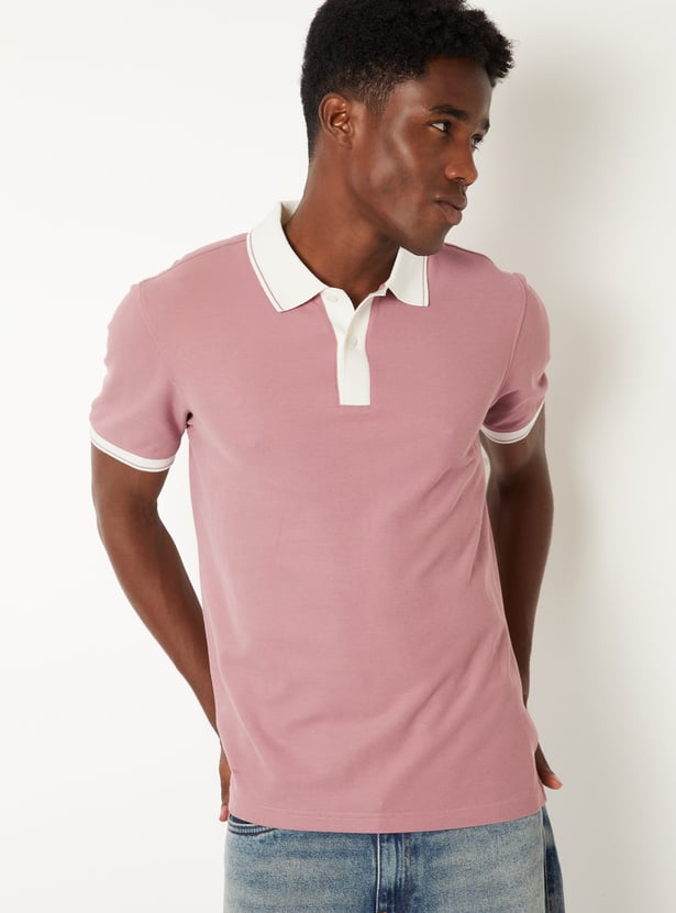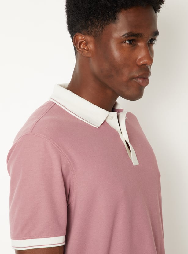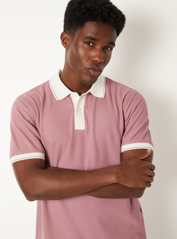 Add a sporty touch to your wardrobe with this colourblock regular fit polo T-shirt. Featuring a classic polo collar, button placket, and half sleeves, it combines comfort with contemporary style.