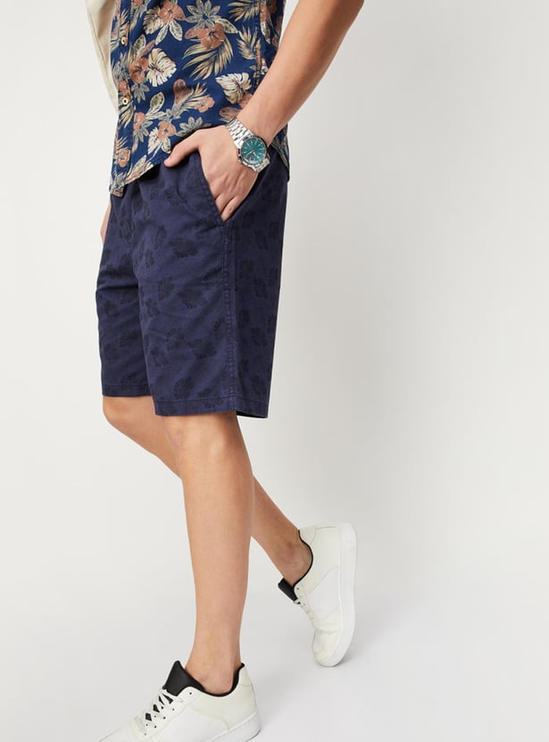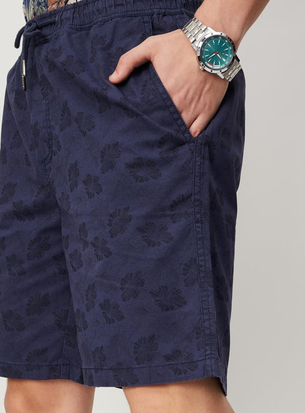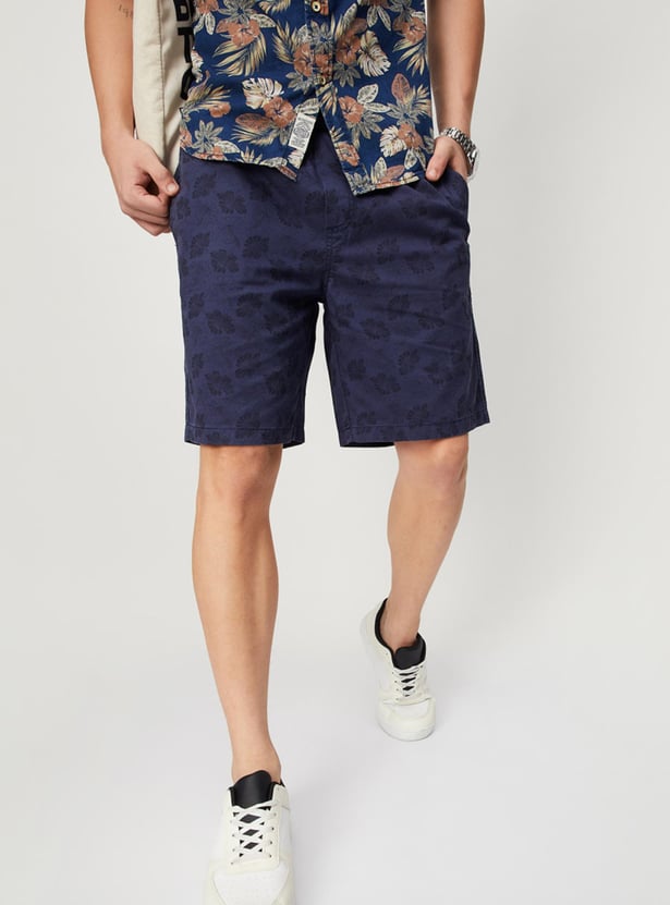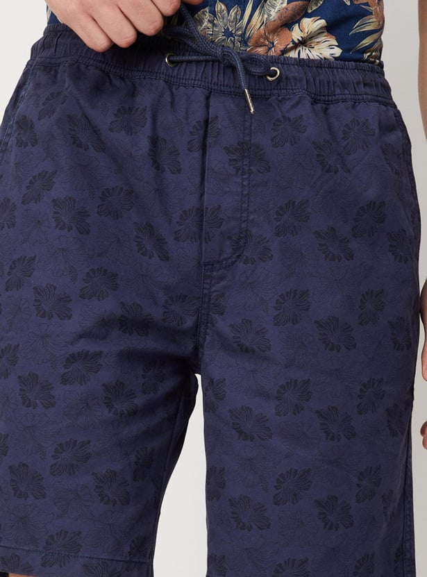 Stay comfortable and stylish all day with this pair of casual shorts. It flaunts a floral printed surface, pockets, and a drawstring closure. Team it with a shirt and lace-up shoes to make a complete look.
