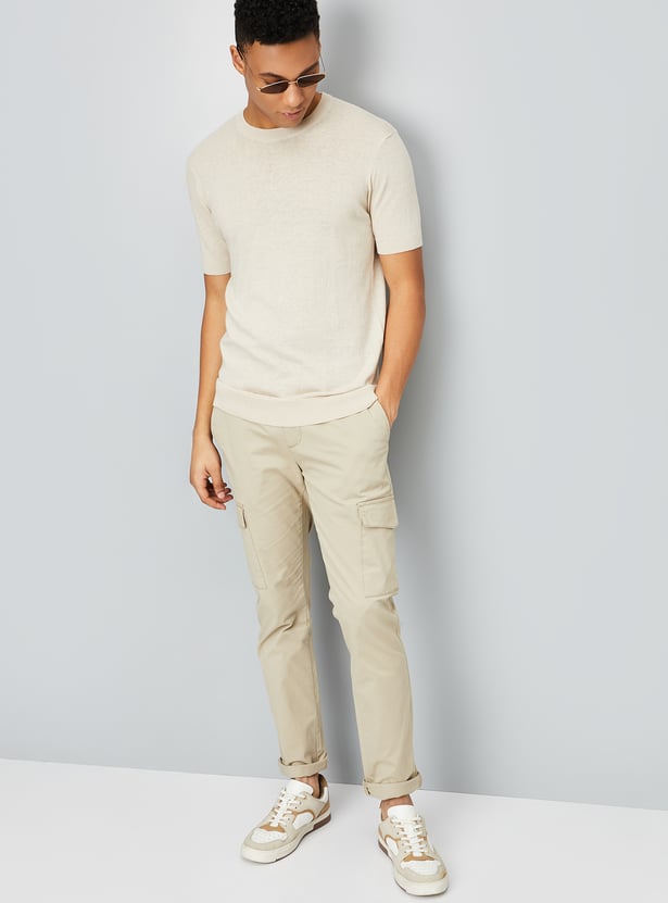 This knit t-shirt is a blend of comfort and simplicity, perfect for your everyday wardrobe. Featuring a classic crew neck and half sleeves, it's a versatile piece that pairs effortlessly.