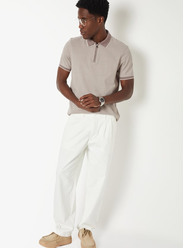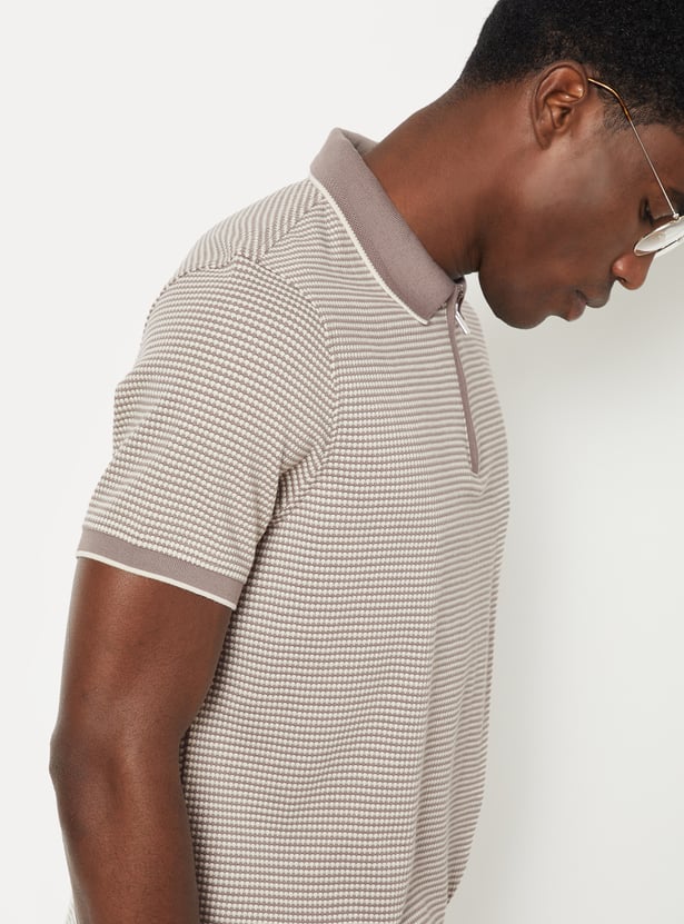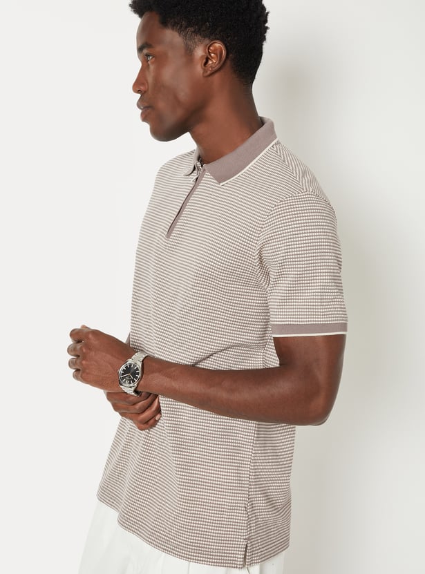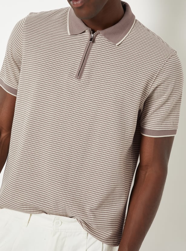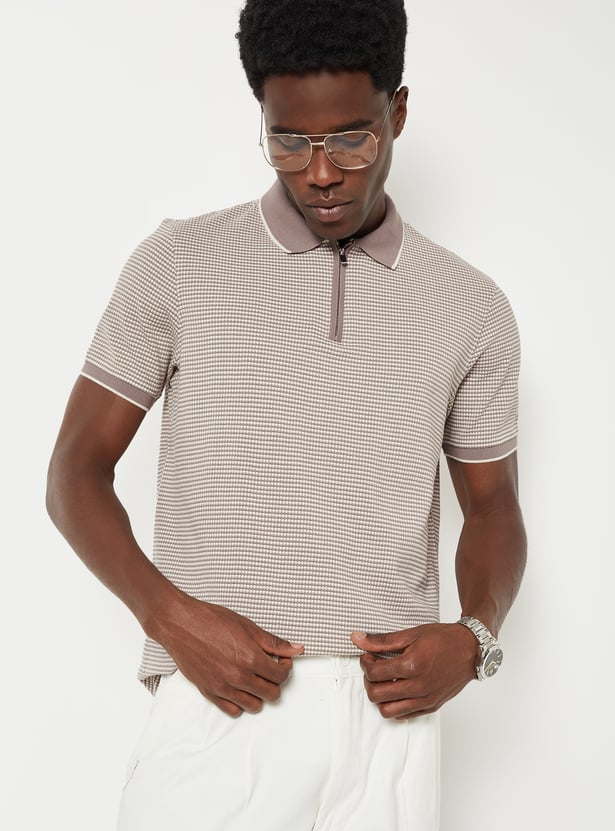 Level up your everyday wardrobe with this knit T-shirt. Combining a classic polo collar and half sleeves with a modern zip closure, this piece offers a sharp, streamlined aesthetic.