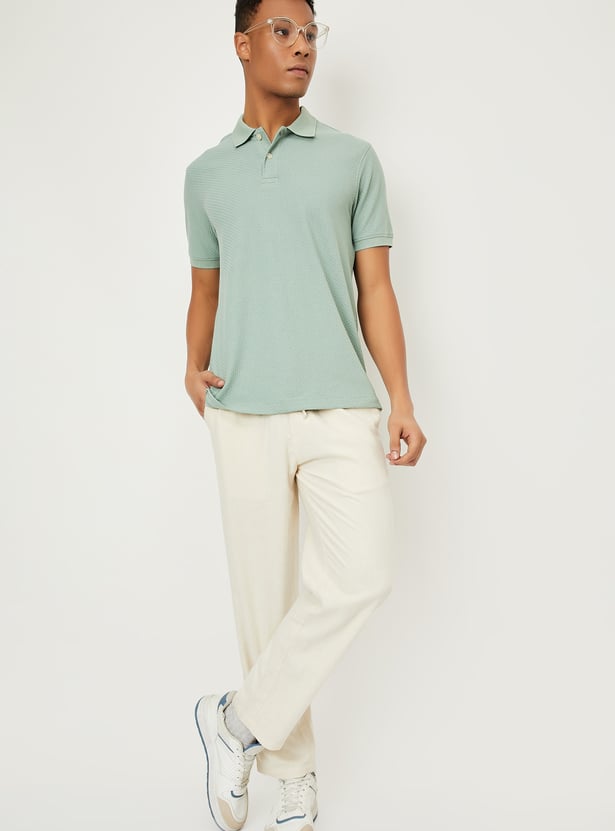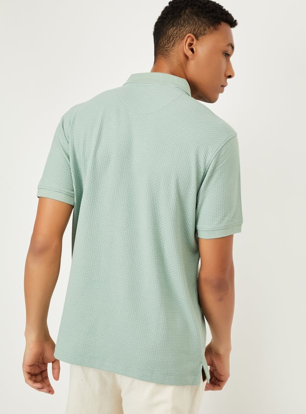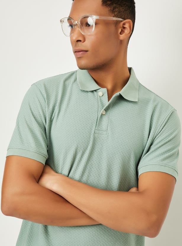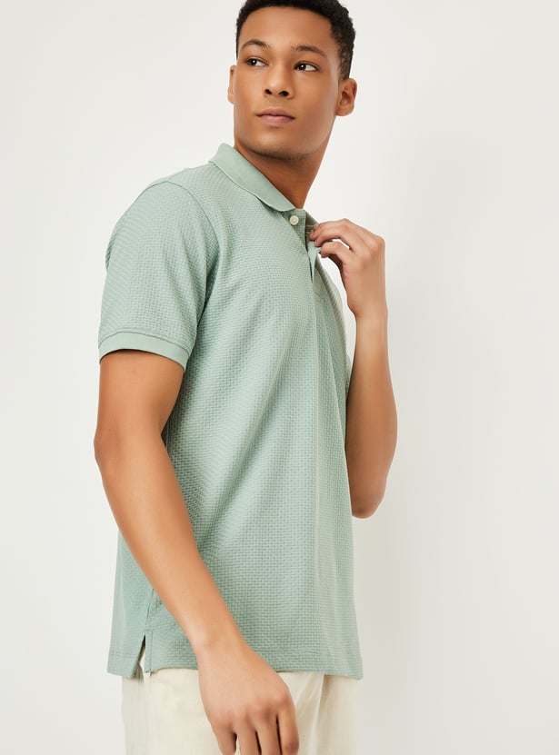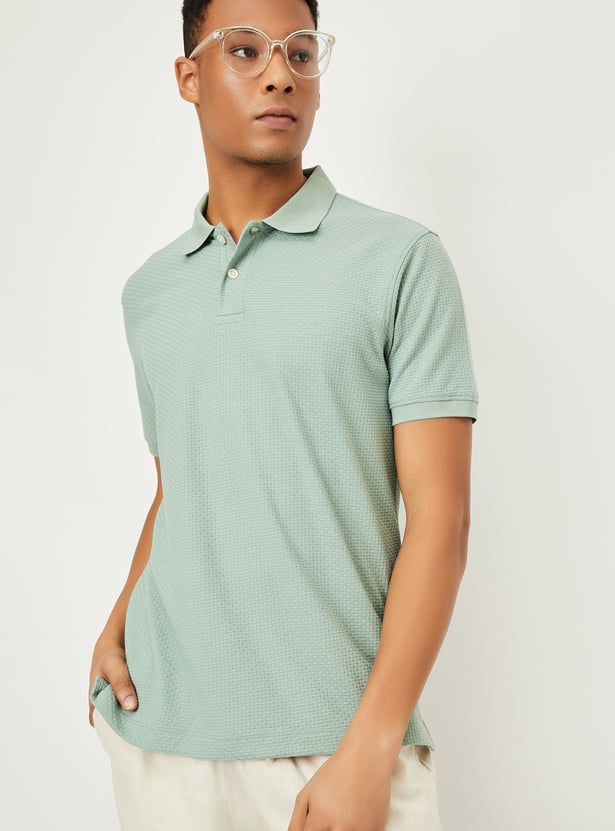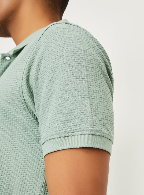 Rock your casual game with this T-shirt, crafted for the ultimate street style. Featuring a sharp polo collar, half sleeves, and ribbed trim, it's got the classic vibes nailed down. The knit design takes it to the next level, adding an edgy twist to your laid-back look.