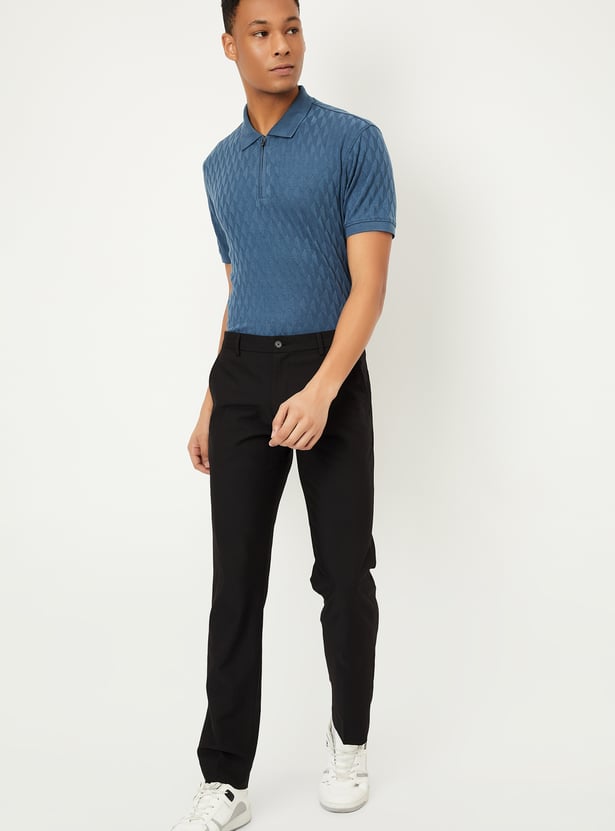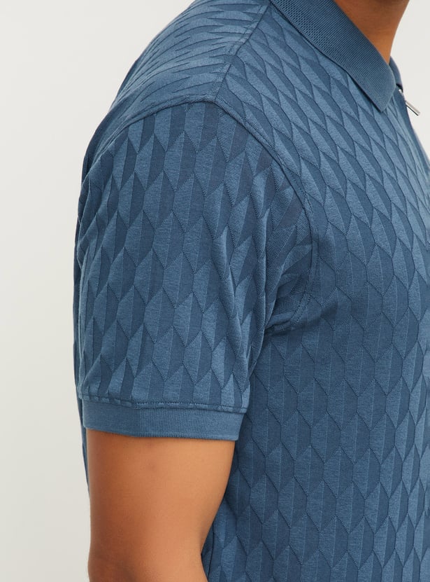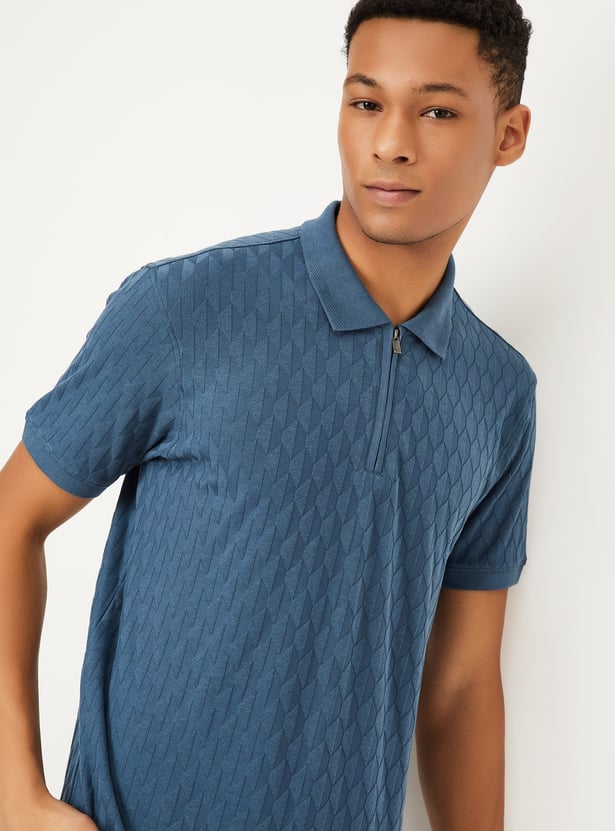 Men Knitted Zip Polo T-shirt