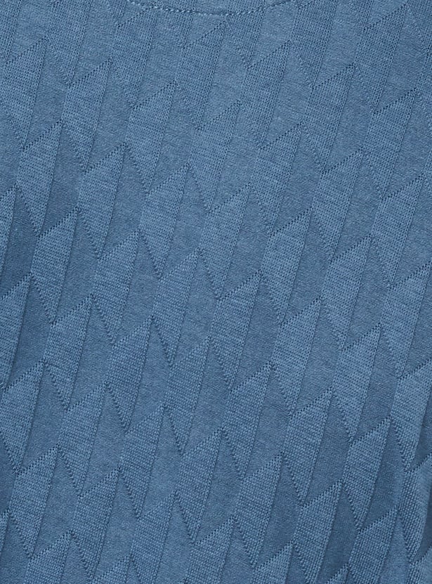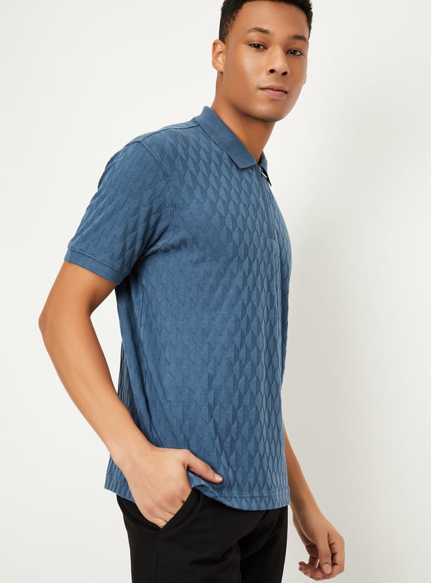 This T-shirt strikes the perfect balance of style and comfort. Featuring a classic polo collar, half sleeves, and a unique knit pattern, it adds a touch of sophistication to your casual wardrobe. The zip closure and side slits enhance the design, offering a modern twist and added ease of movement.