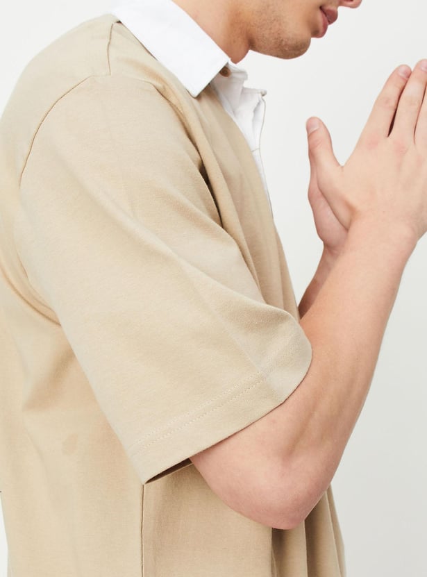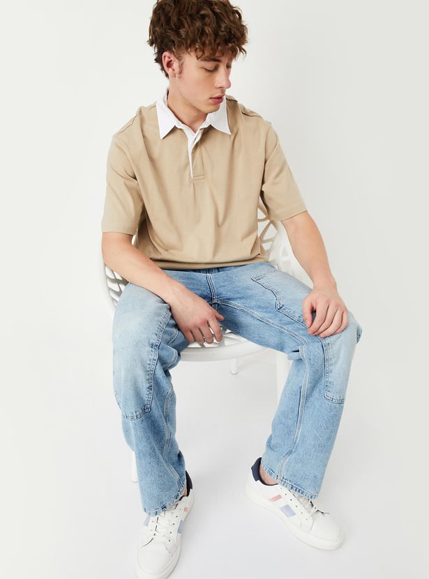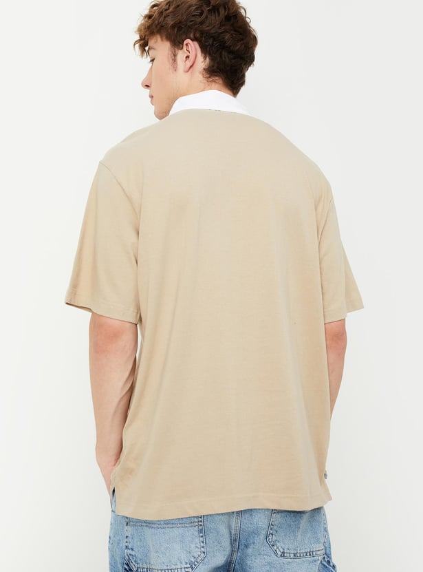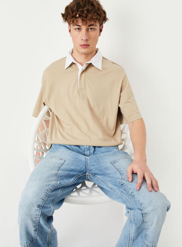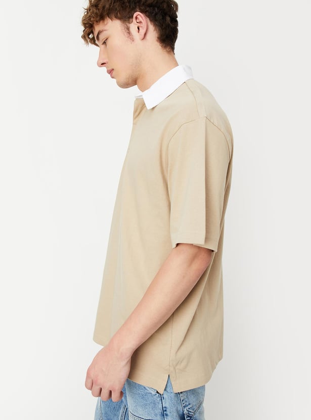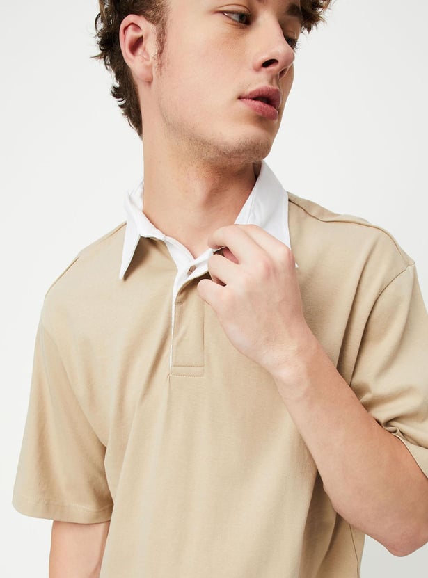 This oversized solid t-shirt with short sleeves, a polo collar, and a button placket adds a fashionable flair to your casual outfit. Wear it with jeans and sneakers for a trendy look.