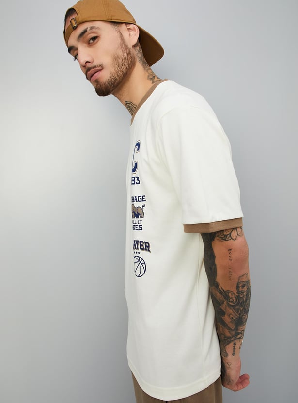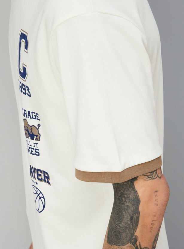 Boost your casual style effortlessly with this oversized printed t-shirt. Highlighting half sleeves and a crew neck, it adds a trendy edge to your look, elevating your casual ensemble.
