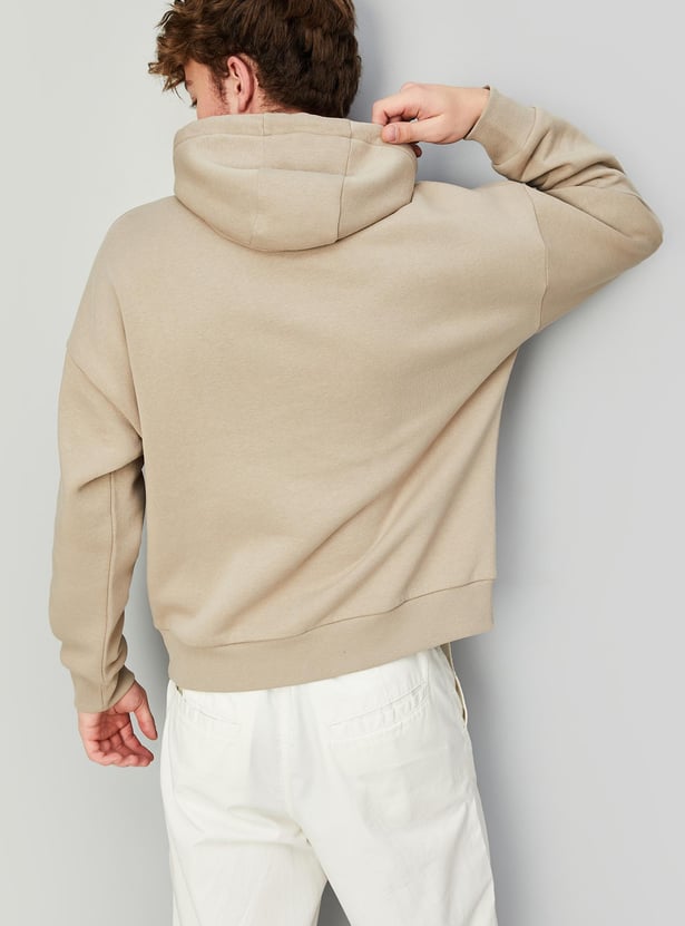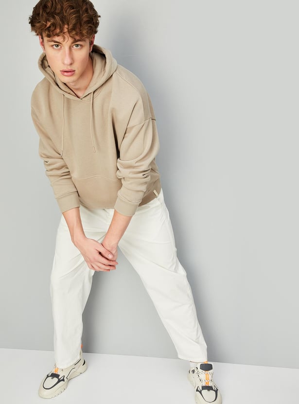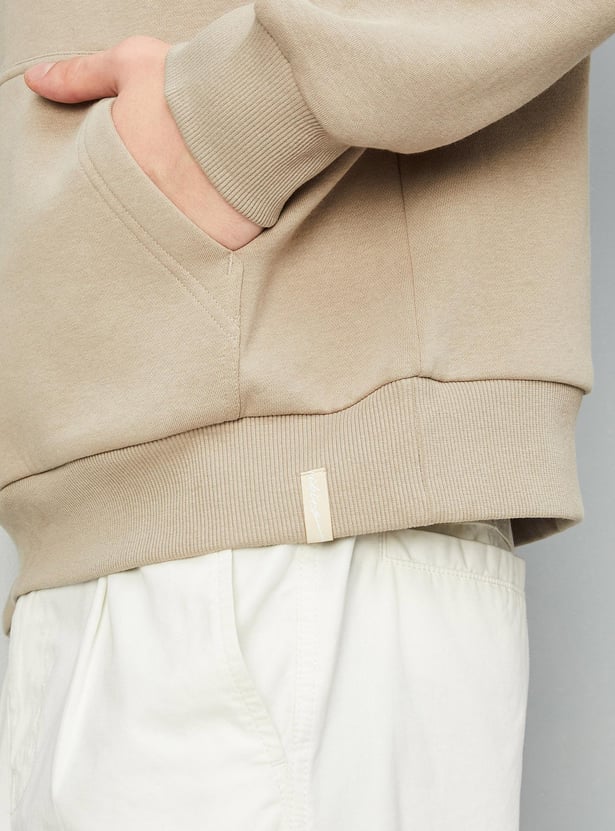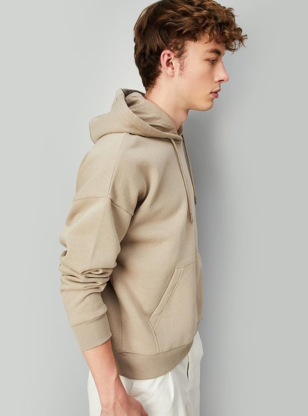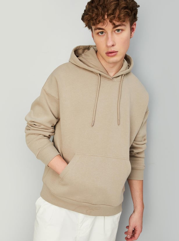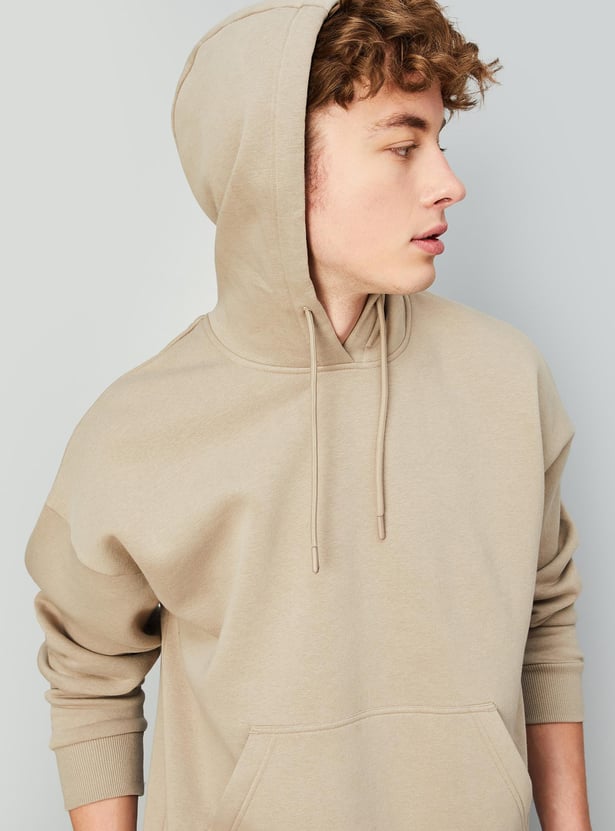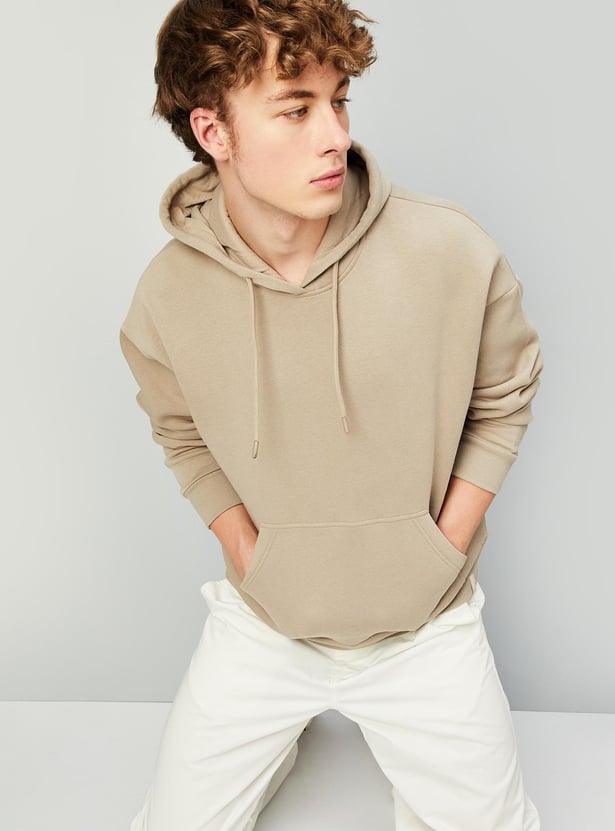 Set yourself for winter with this casual sweatshirt featuring a hooded neck, full sleeves, solid surface, and kangaroo pockets. Style it with a pair of jeans and sneakers for a trendy look.