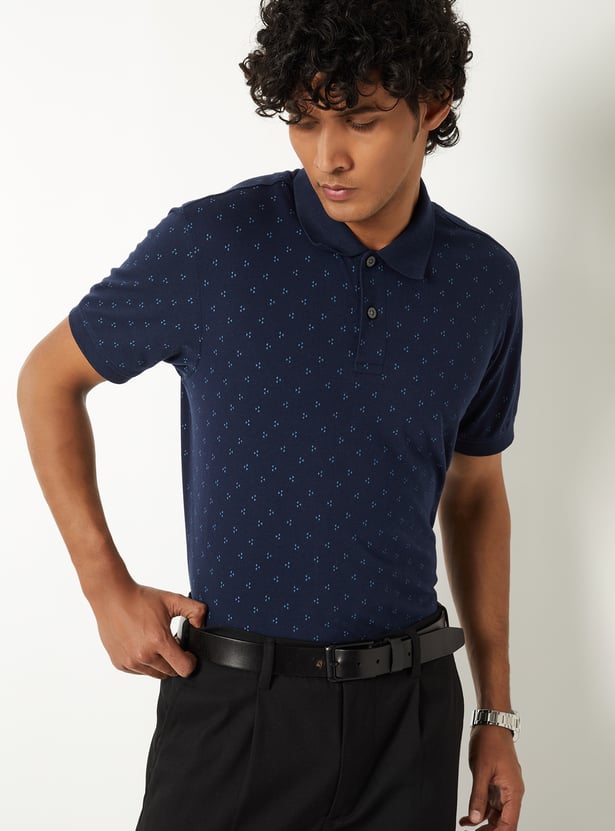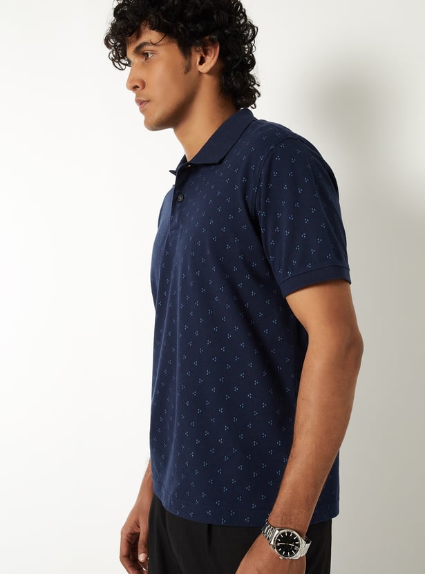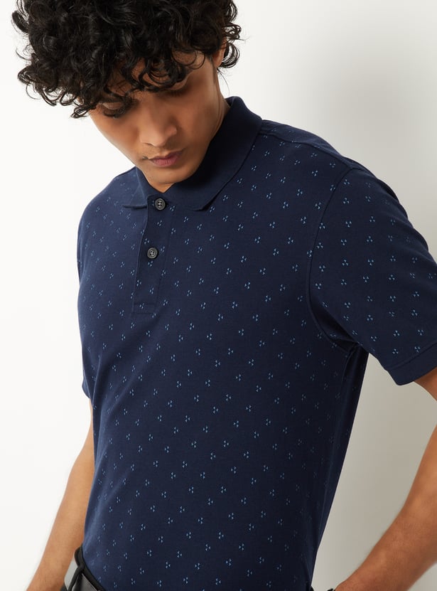 Smart and casual, this printed polo T-shirt is designed with a classic polo collar and button placket. The half sleeves keep it comfortable, while the print adds a stylish twist to the timeless polo silhouette.