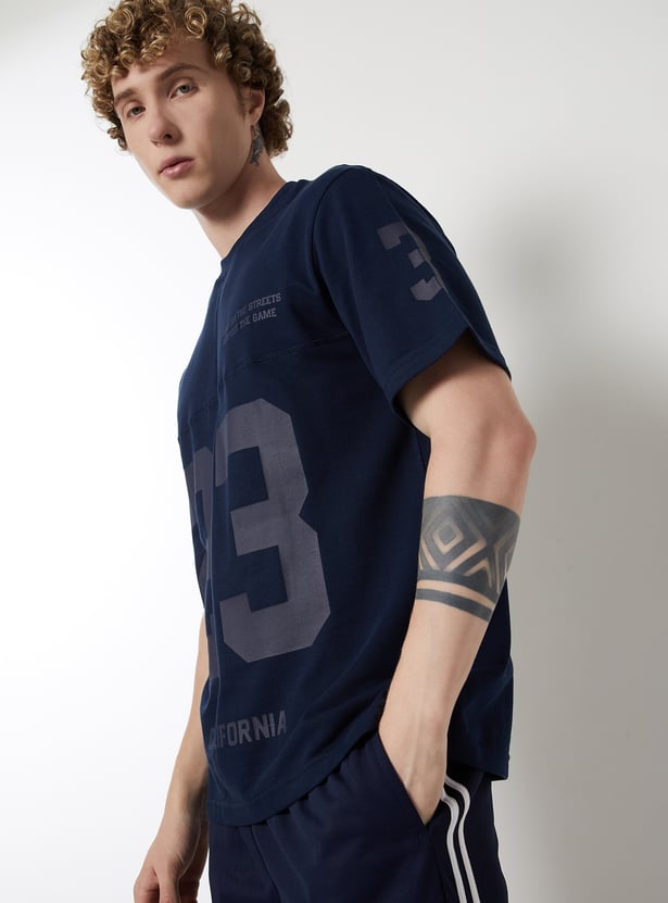 Add a sporty edge to your line up with this printed regular fit T-shirt. Featuring a crew neck and half sleeves, it brings subtle texture and all-day comfort.