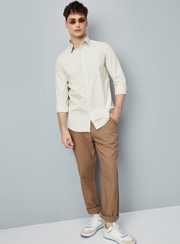 Refresh your casual wardrobe with this stylish printed shirt. Designed with a spread collar, full sleeves with button cuffs, a patch pocket, and a button placket, it combines classic elements with modern appeal.