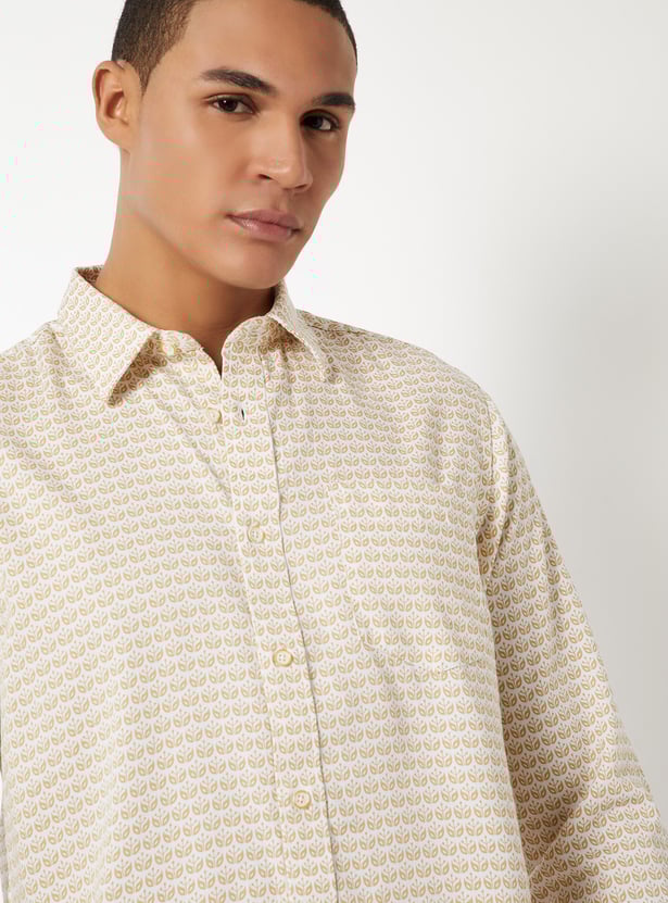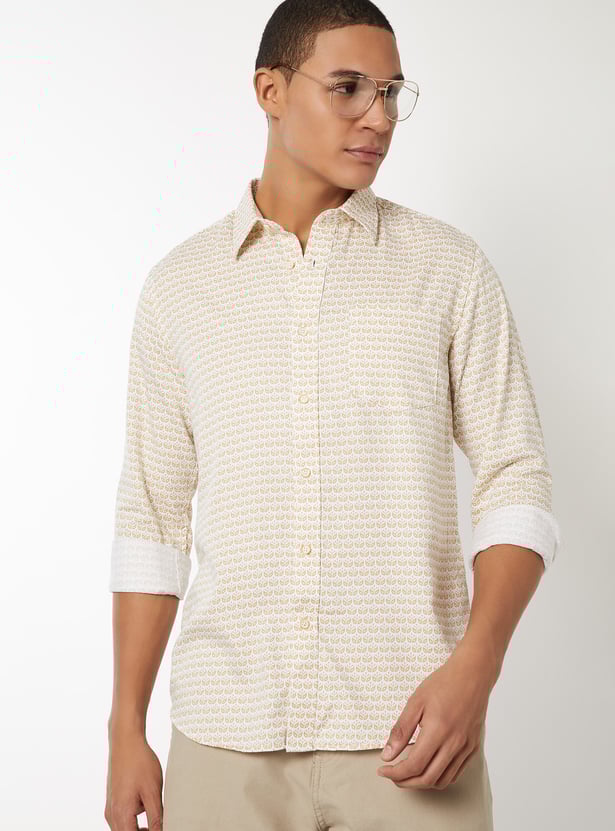 Make a statement with this printed slim fit shirt, featuring a sharp spread collar, full button placket, and a functional patch pocket. Designed with full sleeves and button cuffs, it offers a tailored look with a modern edge.