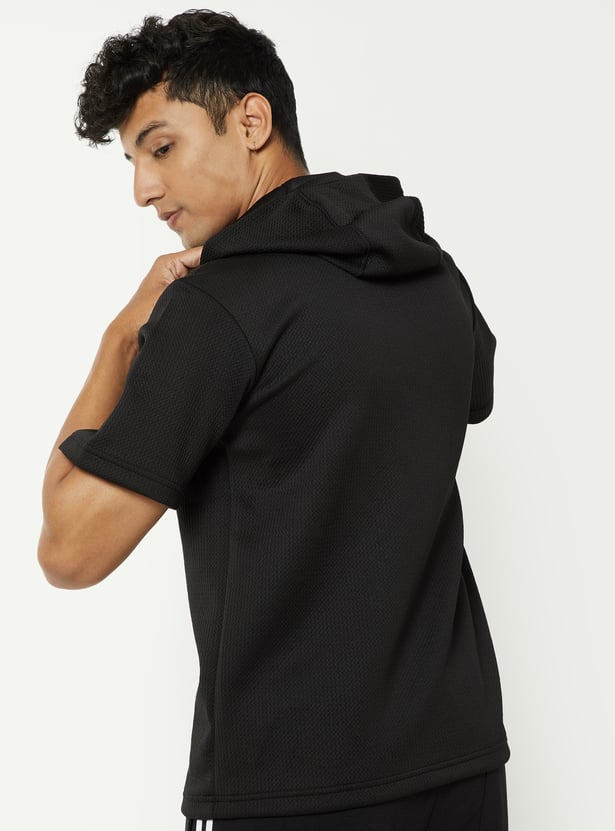 Men Ribbed Hooded Sports T-shirt