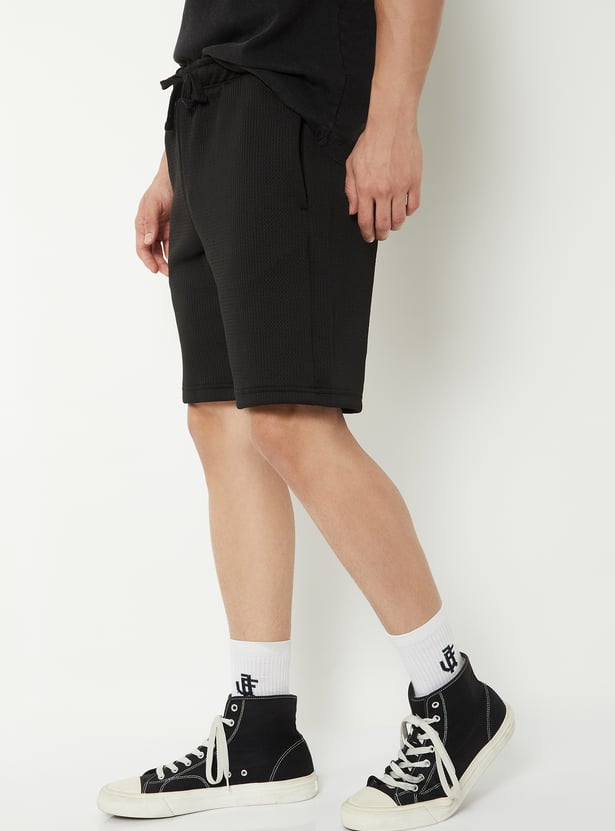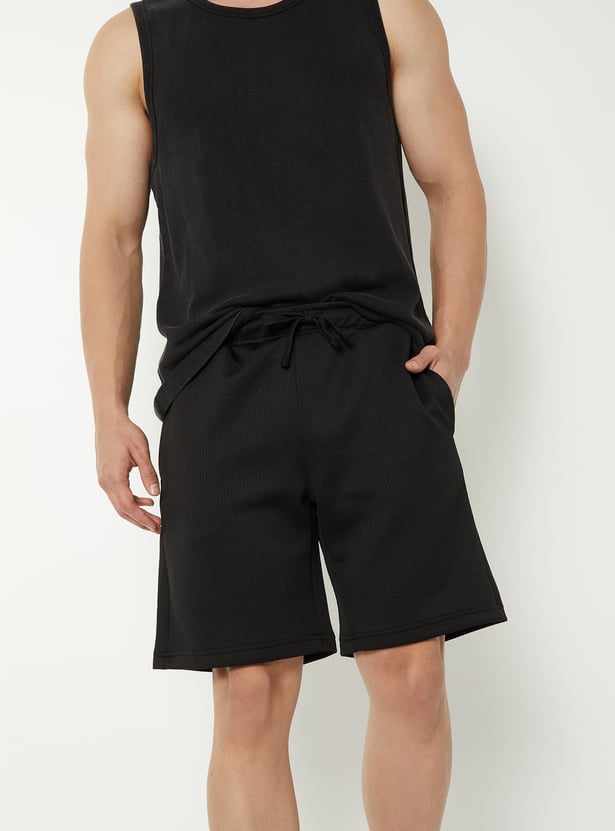 Stay comfortable and stylish with these ribbed sports shorts. Featuring a secure drawstring closure and functional pockets, they combine sporty utility with everyday ease.