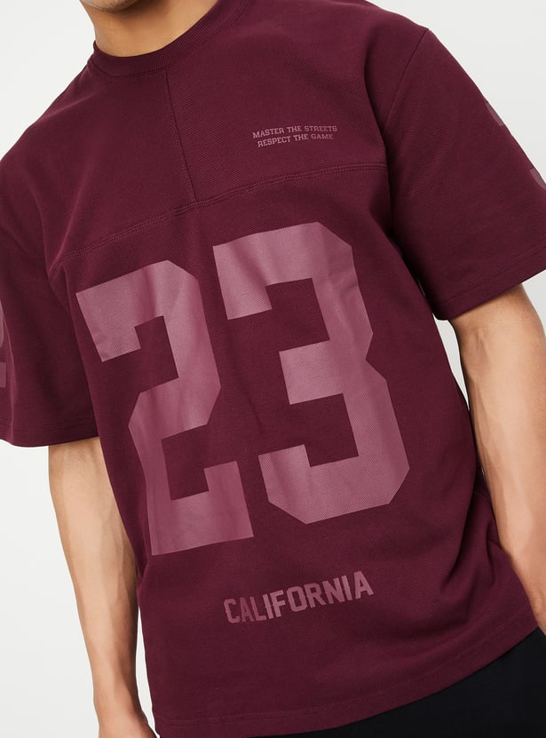 Stay sporty and stylish with this shadow print oversized sports T-shirt, featuring a classic crew neck and half sleeves for a relaxed fit.