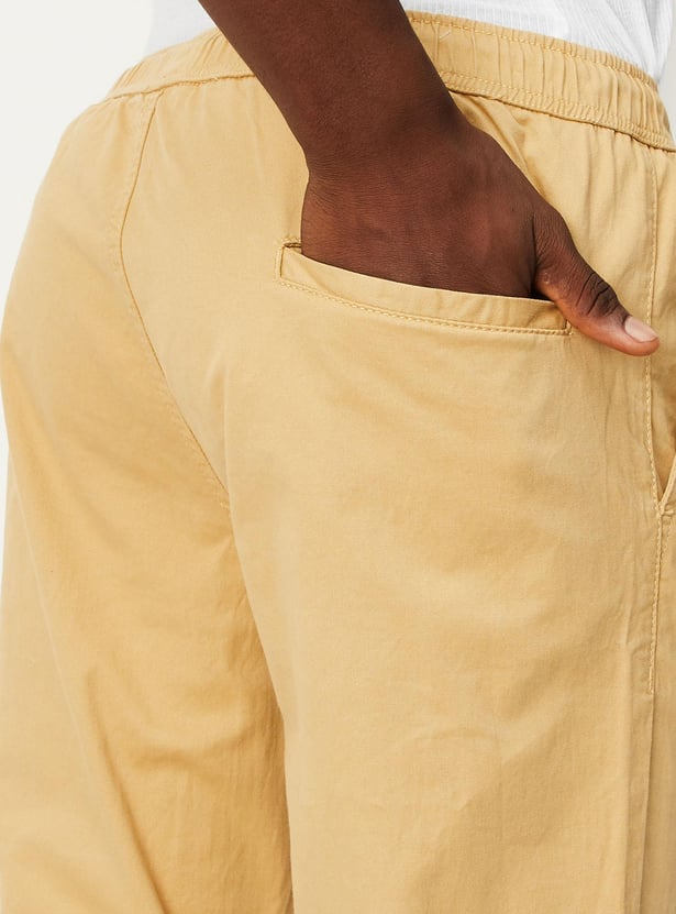 Switch up your everyday wardrobe with this pair of jogger trousers. It is tailored in a slim fit profile with a drawstring waist, side pockets, a back welt pocket, and cuffed hem. Style this pair of trousers with a tee and sneakers to ace the casual look.