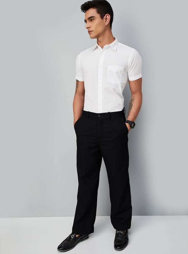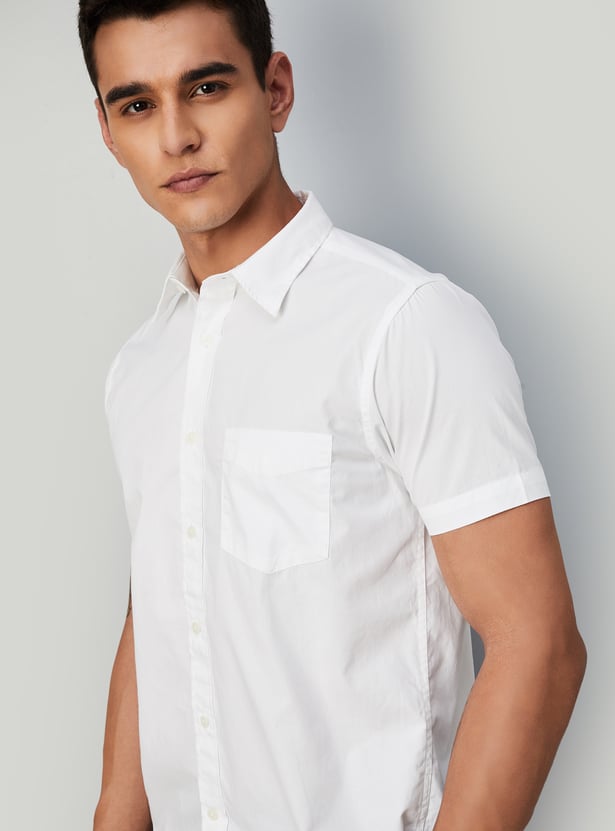 Let your comfort and style pop out with this solid casual shirt. It features a spread collar, half sleeves, a patch pocket, and a button placket that is a perfect addition to your casual wardrobe.
