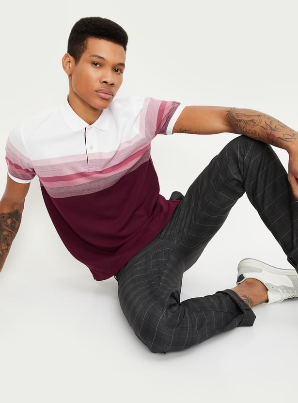 Men Slim Fit Striped Polo T-shirt