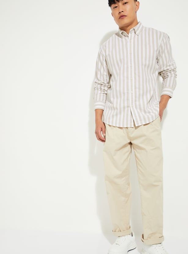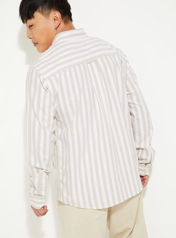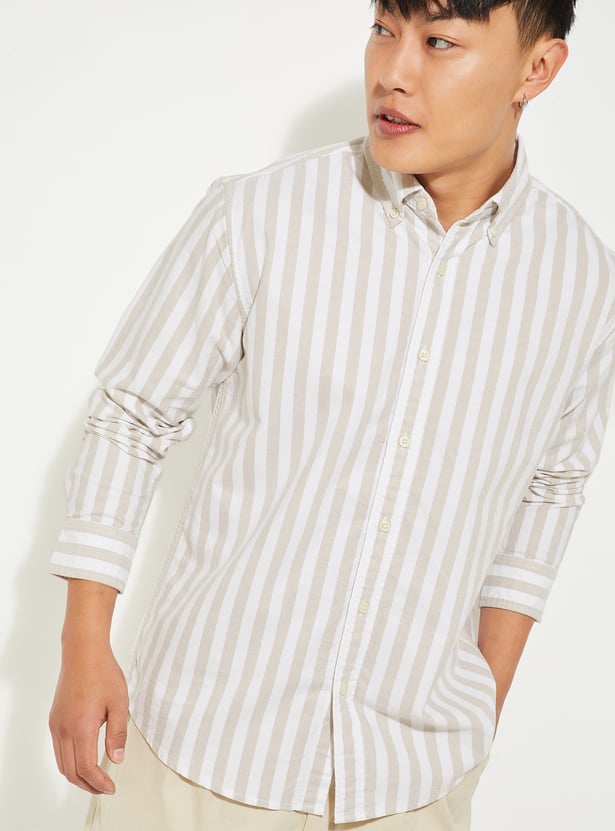 A classic striped regular fit shirt featuring a button-down collar, full sleeves with cuffs, and a button placket—perfect for a crisp, versatile style that works from office to off‑duty.