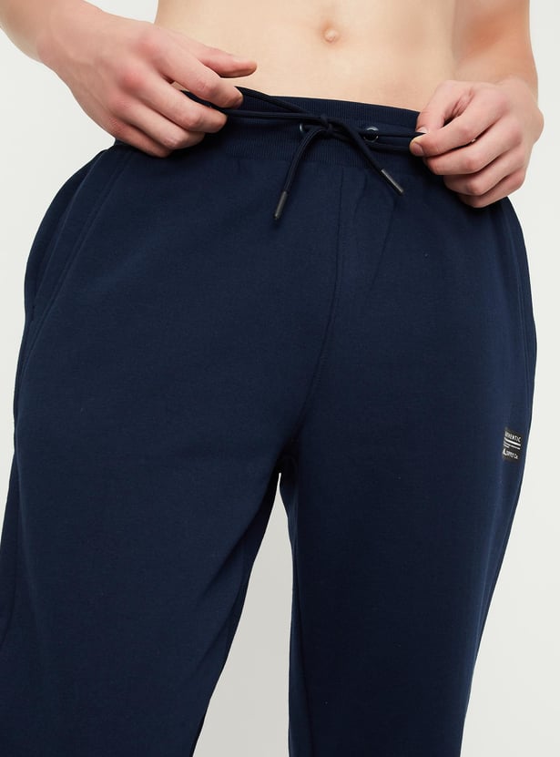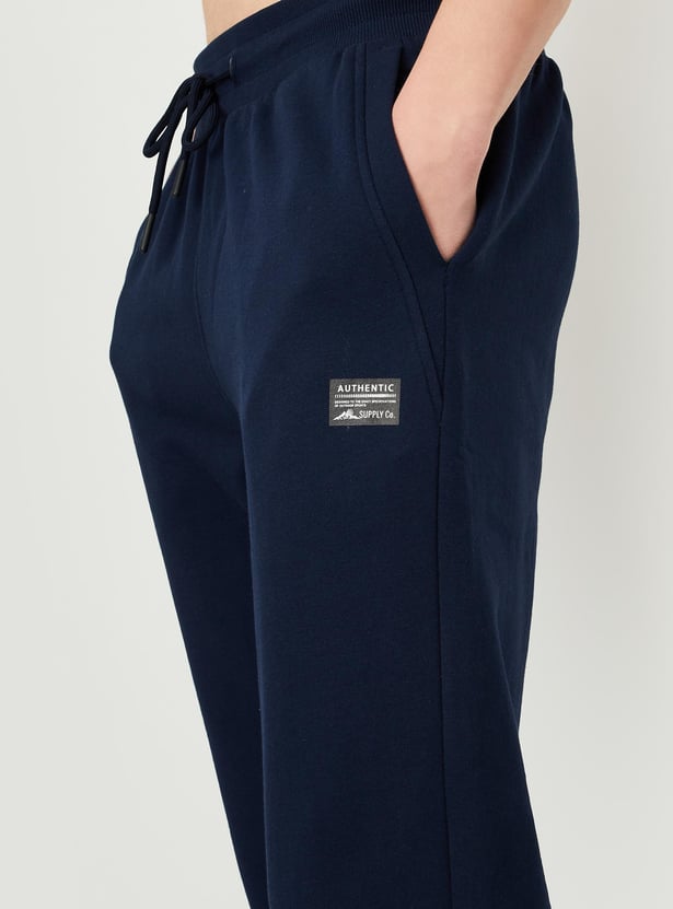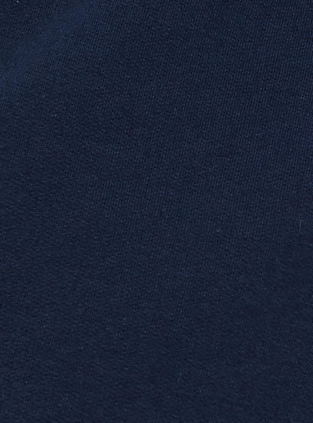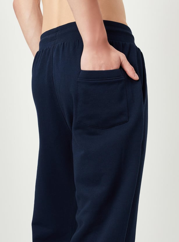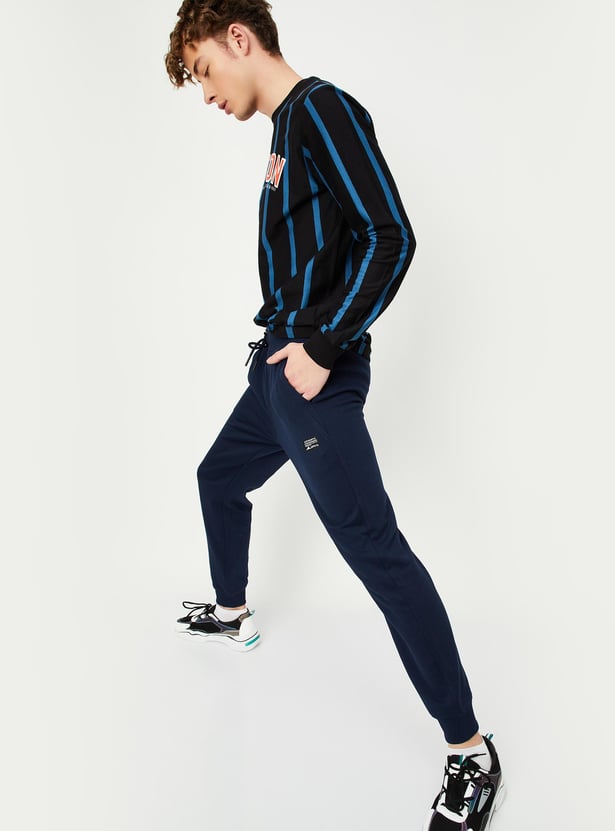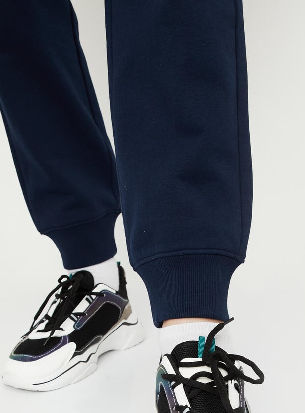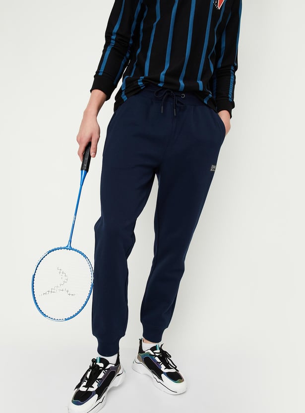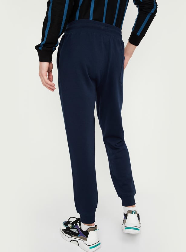 This pair of joggers has a solid surface with an elastic waistband, drawstring closure, and insert pockets. the back patch pocket and ribbed trim complete the look. Team this with a printed T-shirt and sneakers for a dapper look.